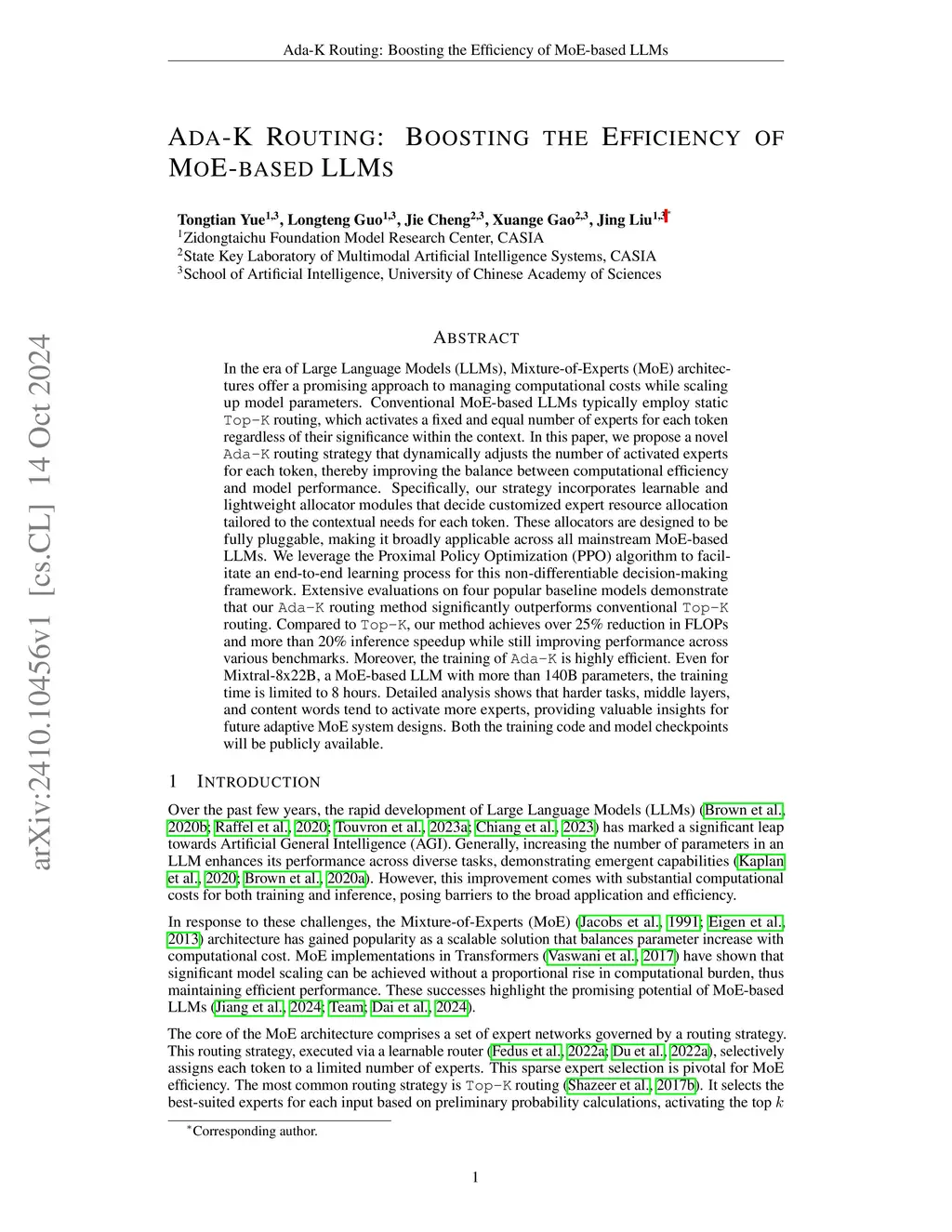 Ada-K Routing: Boosting the Efficiency of MoE-based LLMs