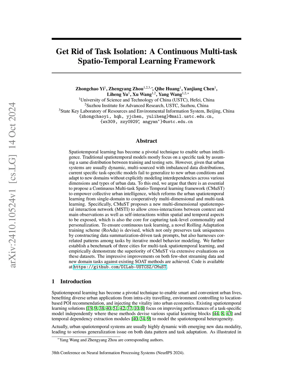 Get Rid of Isolation: A Continuous Multi-task Spatio-Temporal Learning Framework