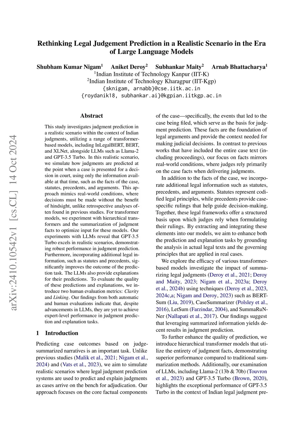This study investigates judgment prediction in a realistic scenario within the context of Indian judgments, utilizing a range of transformer-based models, including InLegalBERT, BERT, and XLNet, alongside LLMs such as Llama-2 and GPT-3.5 Turbo. In this realistic scenario, we simulate how judgments are predicted at the point when a case is presented for a decision in court, using only the information available at that time, such as the facts of the case, statutes, precedents, and arguments. This approach mimics real-world conditions, where decisions must be made without the benefit of hindsight, unlike retrospective analyses often found in previous studies. For transformer models, we experiment with hierarchical transformers and the summarization of judgment facts to optimize input for these models. Our experiments with LLMs reveal that GPT-3.5 Turbo excels in realistic scenarios, demonstrating robust performance in judgment prediction. Furthermore, incorporating additional legal information, such as statutes and precedents, significantly improves the outcome of the prediction task. The LLMs also provide explanations for their predictions. To evaluate the quality of these predictions and explanations, we introduce two human evaluation metrics: Clarity and Linking. Our findings from both automatic and human evaluations indicate that, despite advancements in LLMs, they are yet to achieve expert-level performance in judgment prediction and explanation tasks.