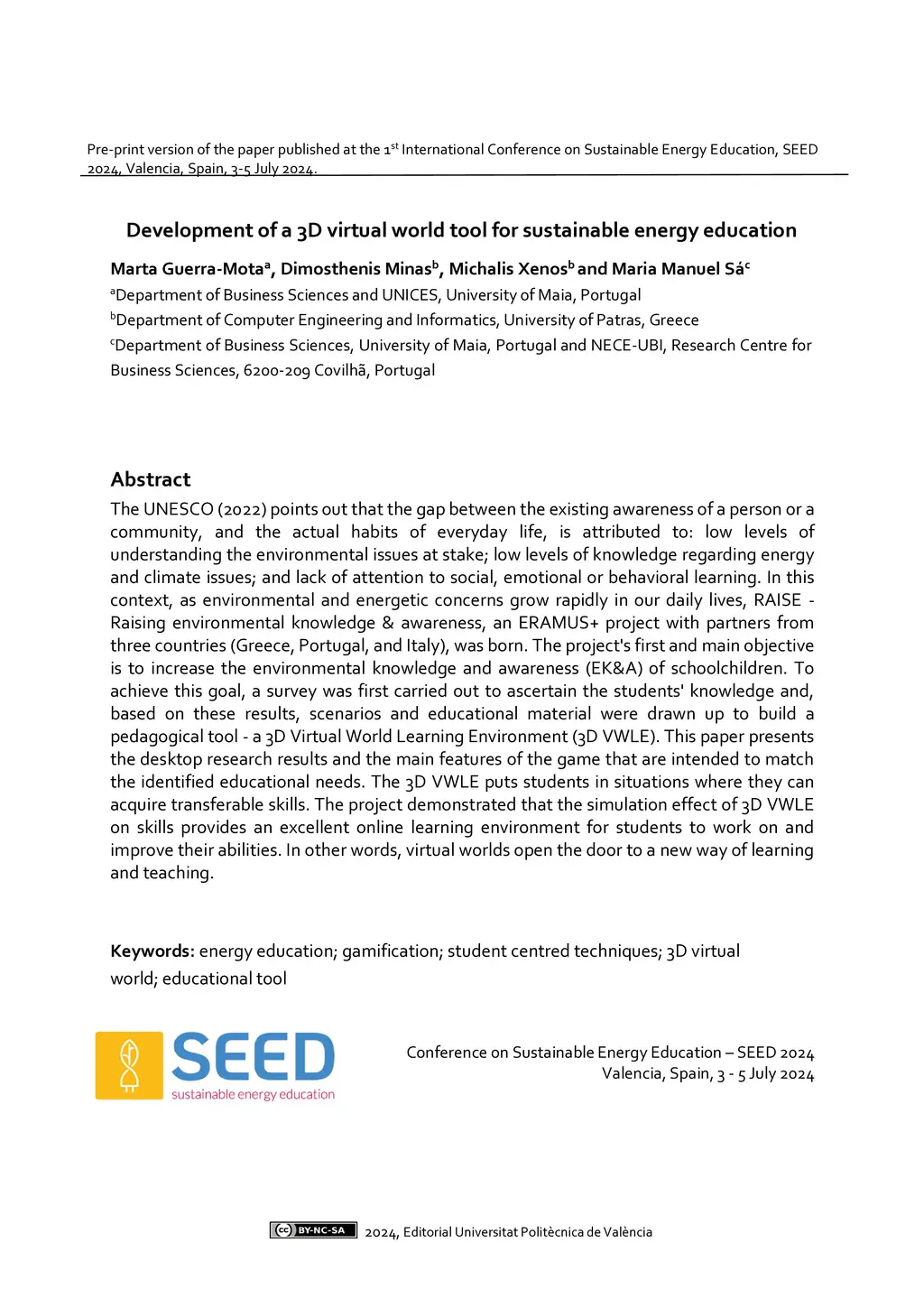 Development of a 3D virtual world tool for sustainable energy education