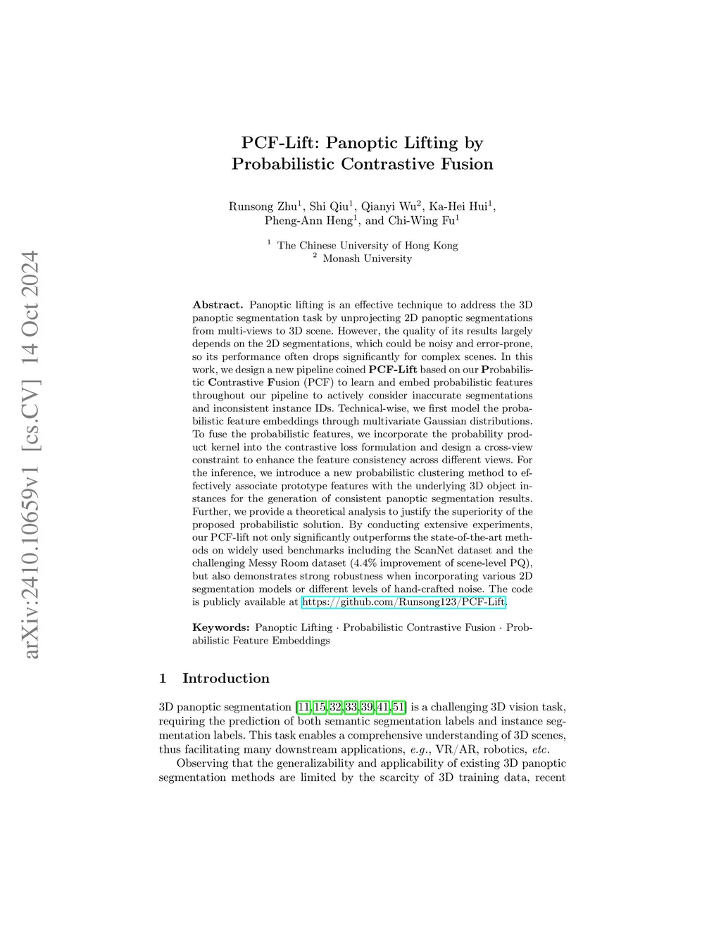 PCF-Lift: Panoptic Lifting by Probabilistic Contrastive Fusion