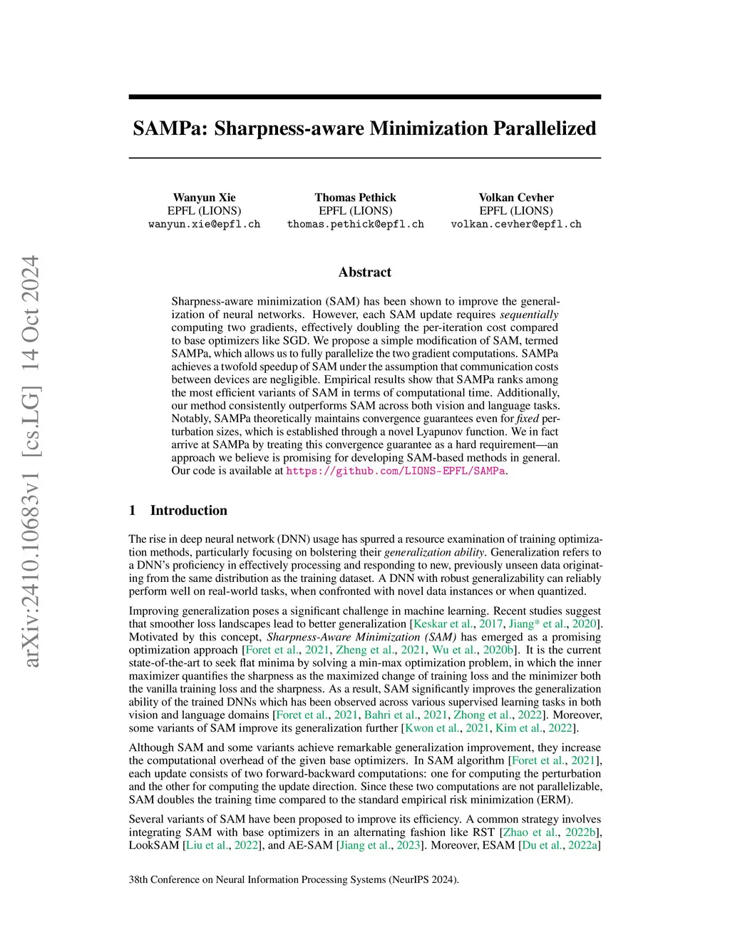 SAMPa: Sharpness-aware Minimization Parallelized