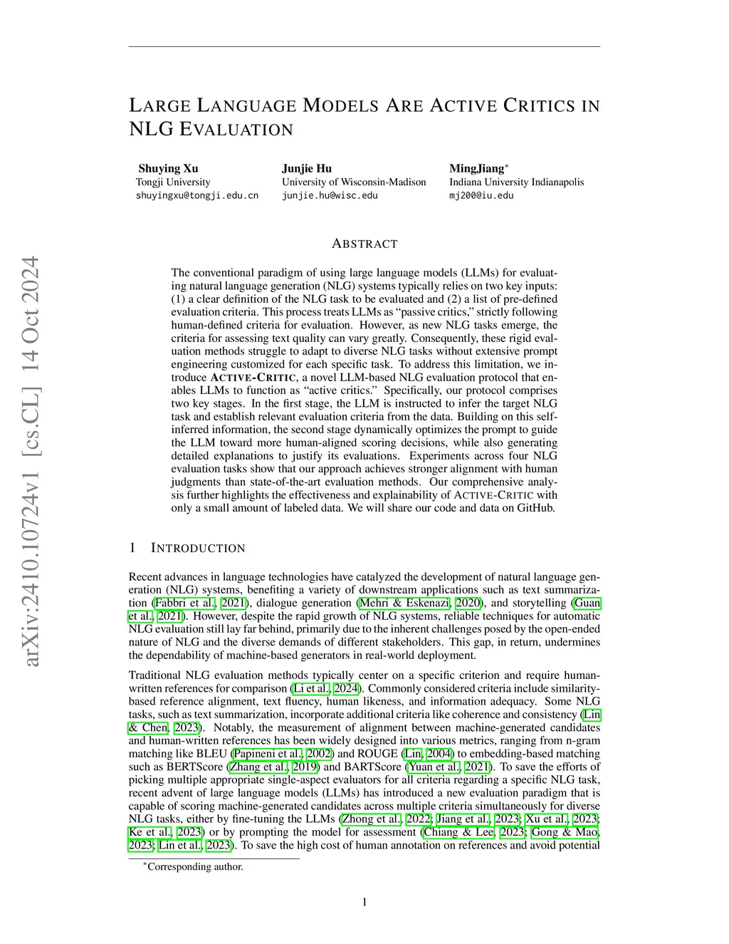 The conventional paradigm of using large language models (LLMs) for natural language generation (NLG) evaluation relies on pre-defined task definitions and evaluation criteria, positioning LLMs as "passive critics" that strictly follow developer-provided guidelines. However, human evaluators often apply implicit criteria, and their expectations in practice can vary widely based on specific end-user needs. Consequently, these rigid evaluation methods struggle to adapt to diverse scenarios without extensive prompt customization. To address this, we introduce Active-Critic, a novel LLM-based evaluator that transforms LLMs into "active critics'' capable of adapting to diverse NLG tasks using limited example data. Active-Critic consists of two stages: (1) self-inferring the target NLG task and relevant evaluation criteria, and (2) dynamically optimizing prompts to produce human-aligned scores along with detailed justifications. Our experiments show that Active-Critic can generate nuanced, context-aware evaluation criteria, enabling it to achieve superior alignment with human judgments across multiple tasks.
