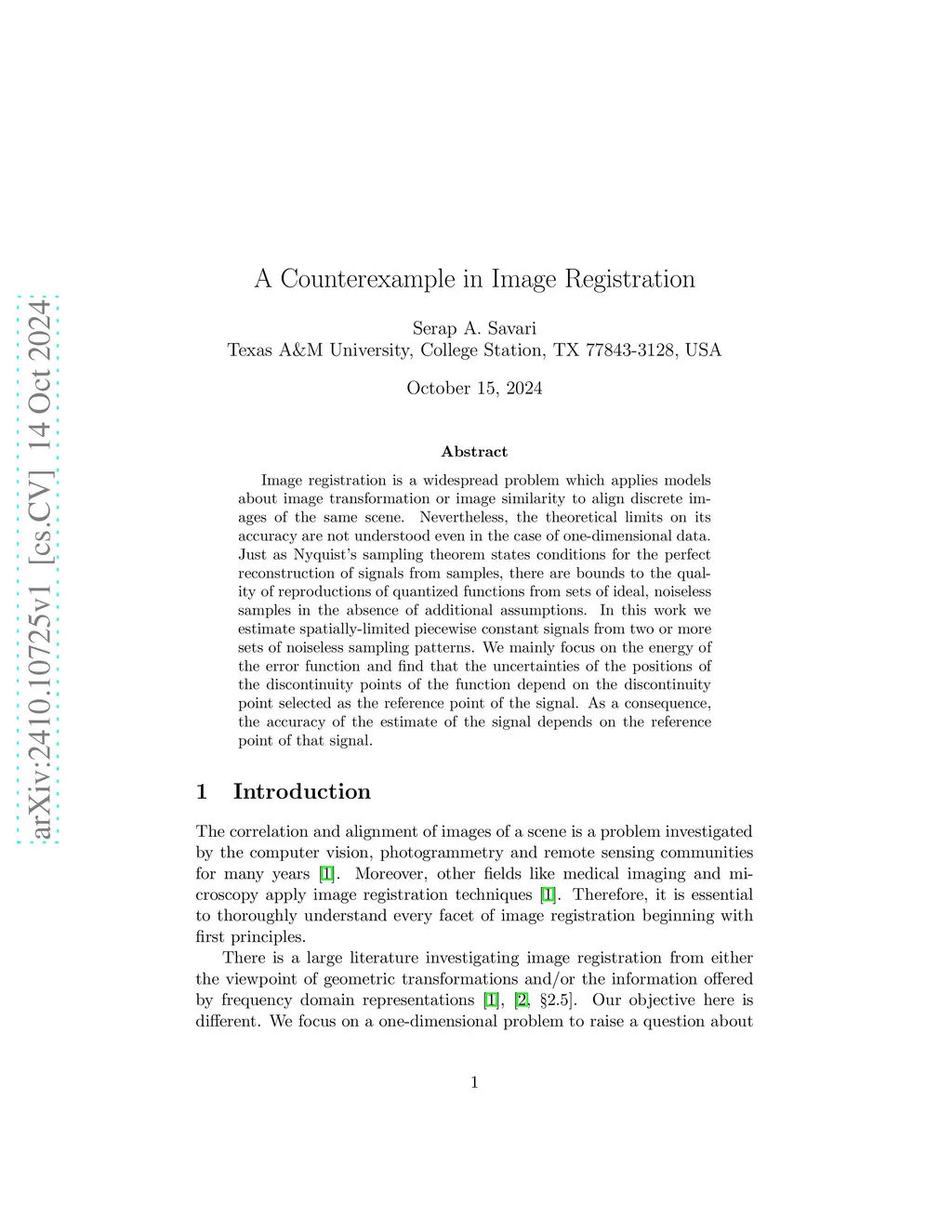 Image registration is a widespread problem which applies models about image transformation or image similarity to align discrete images of the same scene. Nevertheless, the theoretical limits on its accuracy are not understood even in the case of one-dimensional data. Just as Nyquist's sampling theorem states conditions for the perfect reconstruction of signals from samples, there are bounds to the quality of reproductions of quantized functions from sets of ideal, noiseless samples in the absence of additional assumptions. In this work we estimate spatially-limited piecewise constant signals from two or more sets of noiseless sampling patterns. We mainly focus on the energy of the error function and find that the uncertainties of the positions of the discontinuity points of the function depend on the discontinuity point selected as the reference point of the signal. As a consequence, the accuracy of the estimate of the signal depends on the reference point of that signal.