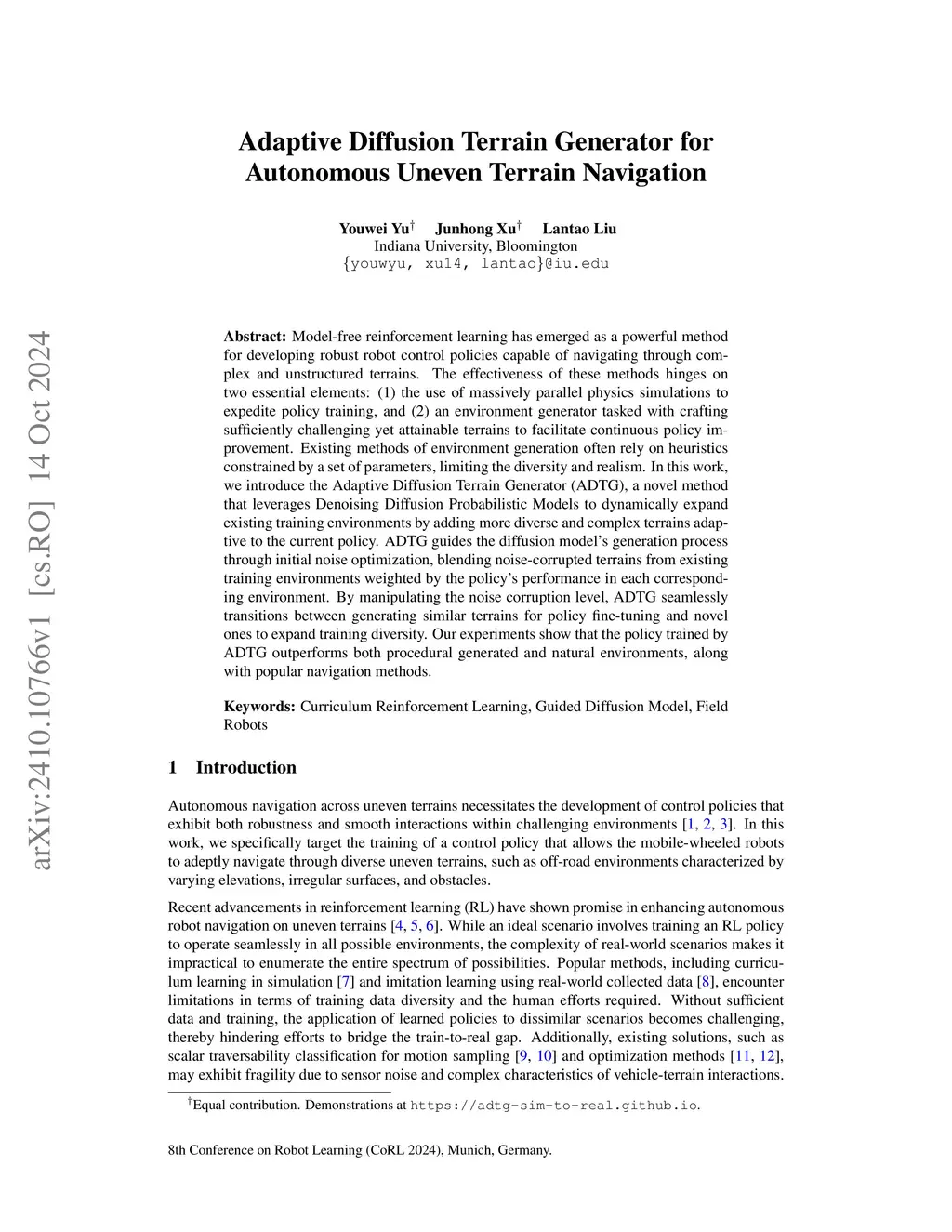 Adaptive Diffusion Terrain Generator for Autonomous Uneven Terrain