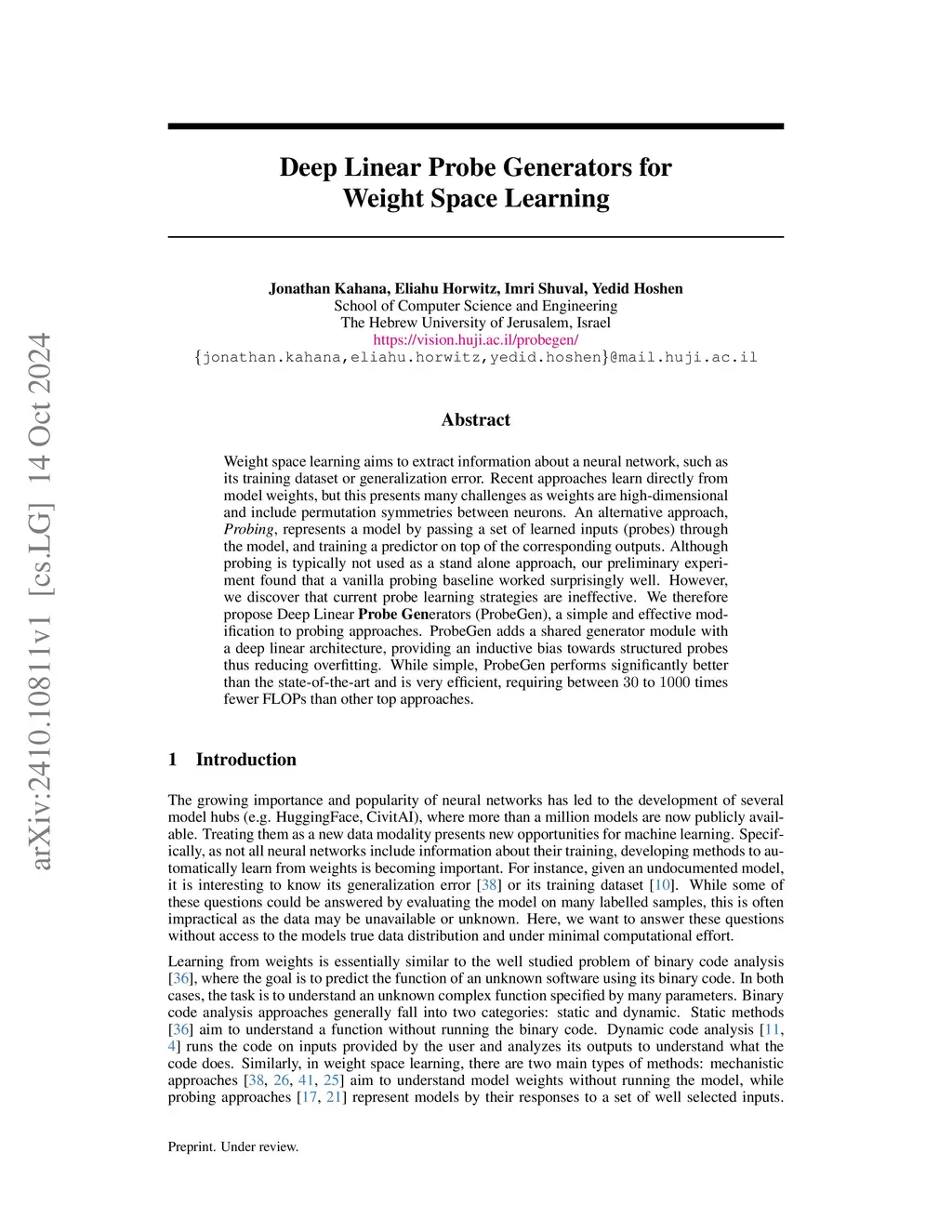 Deep Linear Probe Generators for Weight Space Learning