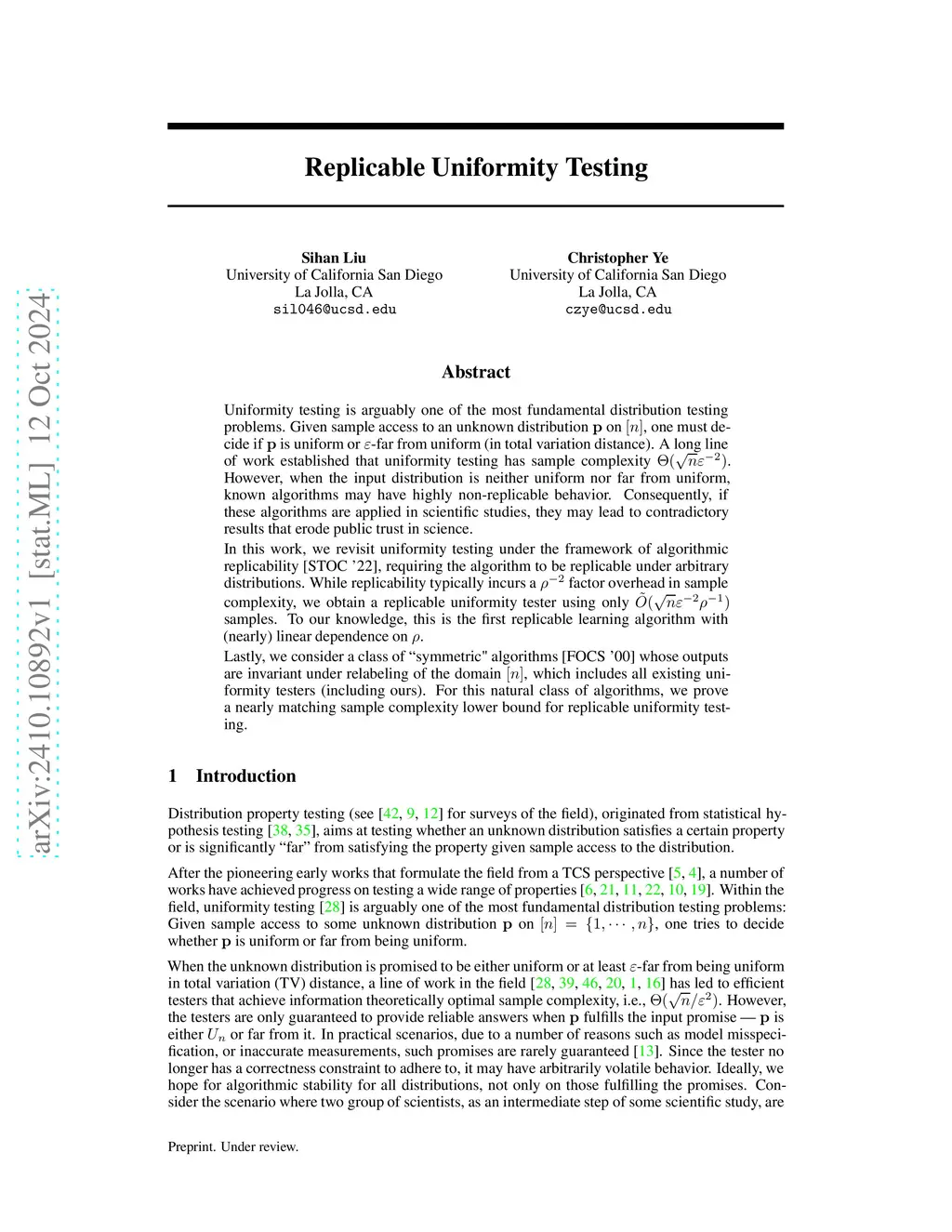 Uniformity testing is arguably one of the most fundamental distribution testing problems. Given sample access to an unknown distribution on , one must decide if is uniform or -far from uniform (in total variation distance). A long line of work established that uniformity testing has sample complexity . However, when the input distribution is neither uniform nor far from uniform, known algorithms may have highly non-replicable behavior. Consequently, if these algorithms are applied in scientific studies, they may lead to contradictory results that erode public trust in science. In this work, we revisit uniformity testing under the framework of algorithmic replicability [STOC '22], requiring the algorithm to be replicable under arbitrary distributions. While replicability typically incurs a factor overhead in sample complexity, we obtain a replicable uniformity tester using only samples. To our knowledge, this is the first replicable learning algorithm with (nearly) linear dependence on . Lastly, we consider a class of ``symmetric" algorithms [FOCS '00] whose outputs are invariant under relabeling of the domain , which includes all existing uniformity testers (including ours). For this natural class of algorithms, we prove a nearly matching sample complexity lower bound for replicable uniformity testing.