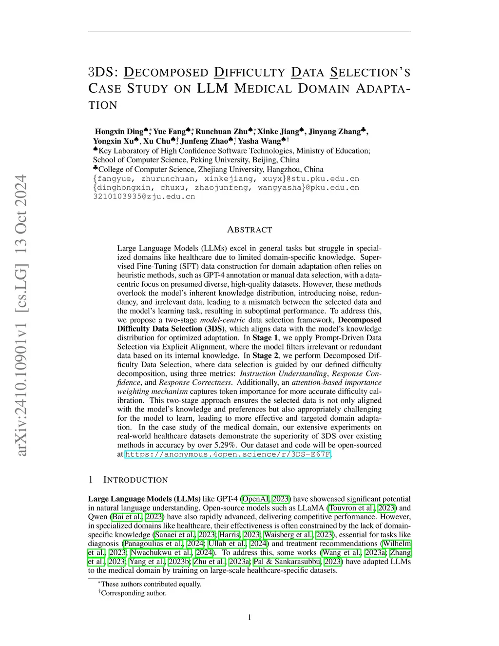 3DS: Medical Domain Adaptation of LLMs via Decomposed Difficulty-based Data Selection