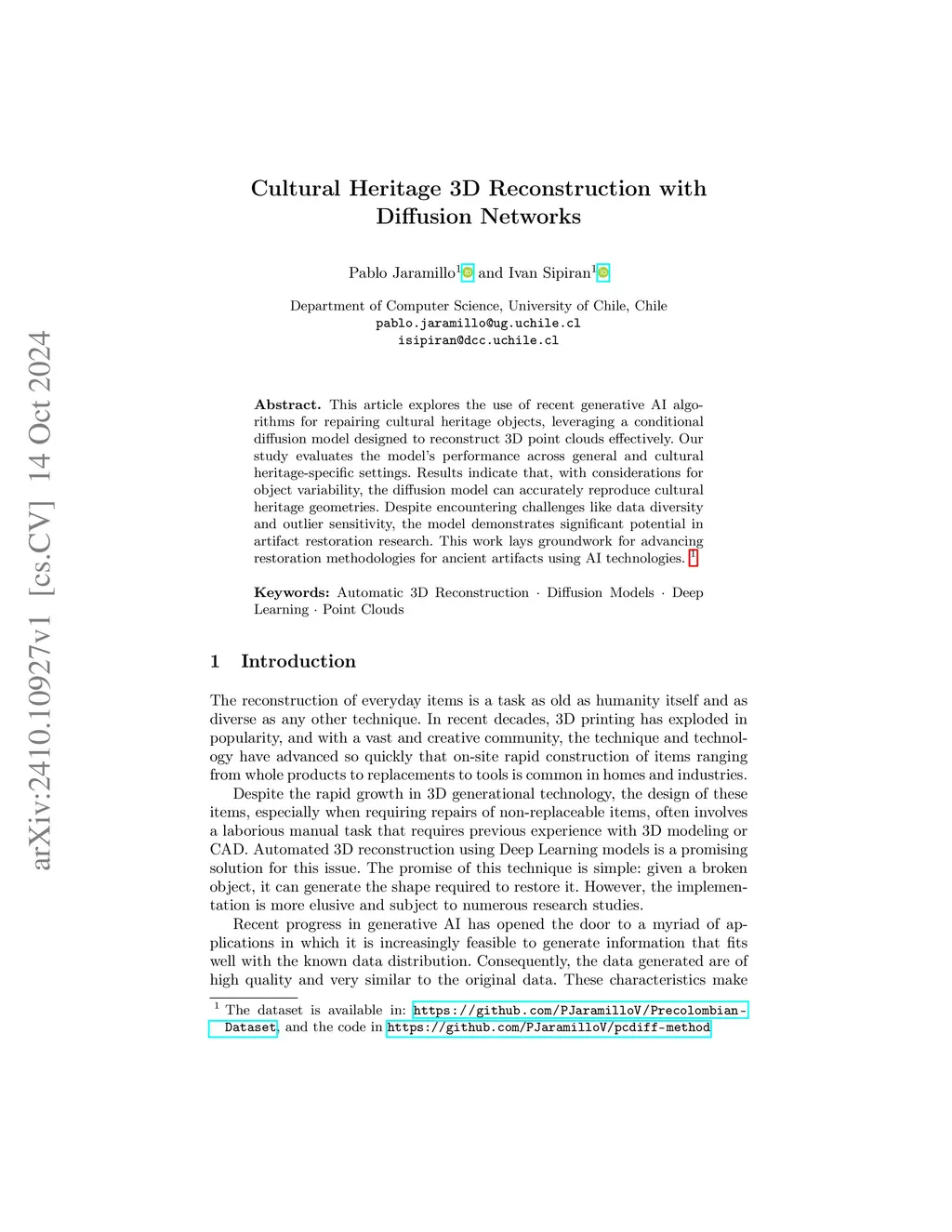 Cultural Heritage 3D Reconstruction with Diffusion Networks