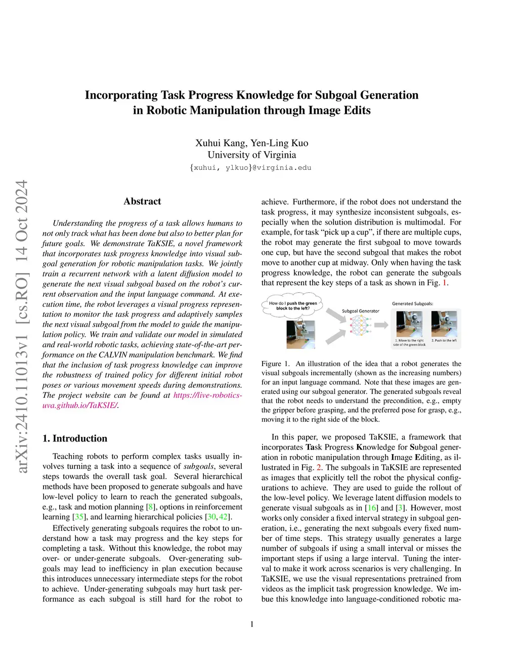 Understanding the progress of a task allows humans to not only track what has been done but also to better plan for future goals. We demonstrate TaKSIE, a novel framework that incorporates task progress knowledge into visual subgoal generation for robotic manipulation tasks. We jointly train a recurrent network with a latent diffusion model to generate the next visual subgoal based on the robot's current observation and the input language command. At execution time, the robot leverages a visual progress representation to monitor the task progress and adaptively samples the next visual subgoal from the model to guide the manipulation policy. We train and validate our model in simulated and real-world robotic tasks, achieving state-of-the-art performance on the CALVIN manipulation benchmark. We find that the inclusion of task progress knowledge can improve the robustness of trained policy for different initial robot poses or various movement speeds during demonstrations. The project website can be found at https://live-robotics-uva.github.io/TaKSIE/ .