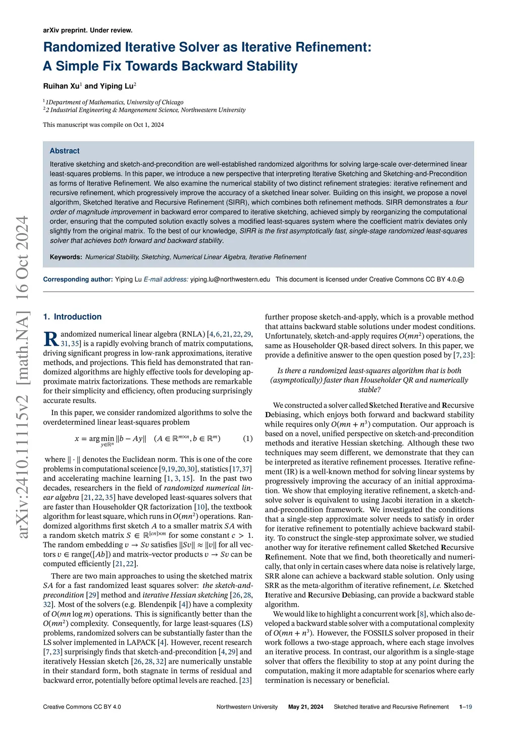 Iterative sketching and sketch-and-precondition are well-established randomized algorithms for solving large-scale, over-determined linear least-squares problems. In this paper, we introduce a new perspective that interprets Iterative Sketching and Sketching-and-Precondition as forms of Iterative Refinement. We also examine the numerical stability of two distinct refinement strategies, iterative refinement and recursive refinement, which progressively improve the accuracy of a sketched linear solver. Building on this insight, we propose a novel algorithm, Sketched Iterative and Recursive Refinement (SIRR), which combines both refinement methods. SIRR demonstrates a \emph{four order of magnitude improvement} in backward error compared to iterative sketching, achieved simply by reorganizing the computational order, ensuring that the computed solution exactly solves a modified least-squares system where the coefficient matrix deviates only slightly from the original matrix. To the best of our knowledge, \emph{SIRR is the first asymptotically fast, single-stage randomized least-squares solver that achieves both forward and backward stability}.