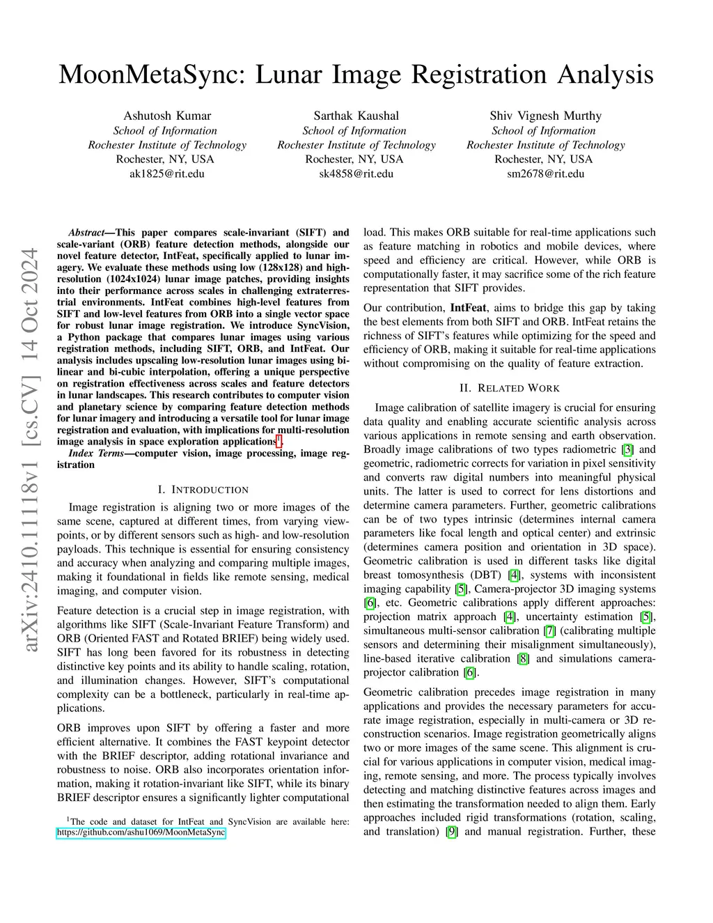 This paper compares scale-invariant (SIFT) and scale-variant (ORB) feature detection methods, alongside our novel feature detector, IntFeat, specifically applied to lunar imagery. We evaluate these methods using low (128x128) and high-resolution (1024x1024) lunar image patches, providing insights into their performance across scales in challenging extraterrestrial environments. IntFeat combines high-level features from SIFT and low-level features from ORB into a single vector space for robust lunar image registration. We introduce SyncVision, a Python package that compares lunar images using various registration methods, including SIFT, ORB, and IntFeat. Our analysis includes upscaling low-resolution lunar images using bi-linear and bi-cubic interpolation, offering a unique perspective on registration effectiveness across scales and feature detectors in lunar landscapes. This research contributes to computer vision and planetary science by comparing feature detection methods for lunar imagery and introducing a versatile tool for lunar image registration and evaluation, with implications for multi-resolution image analysis in space exploration applications.