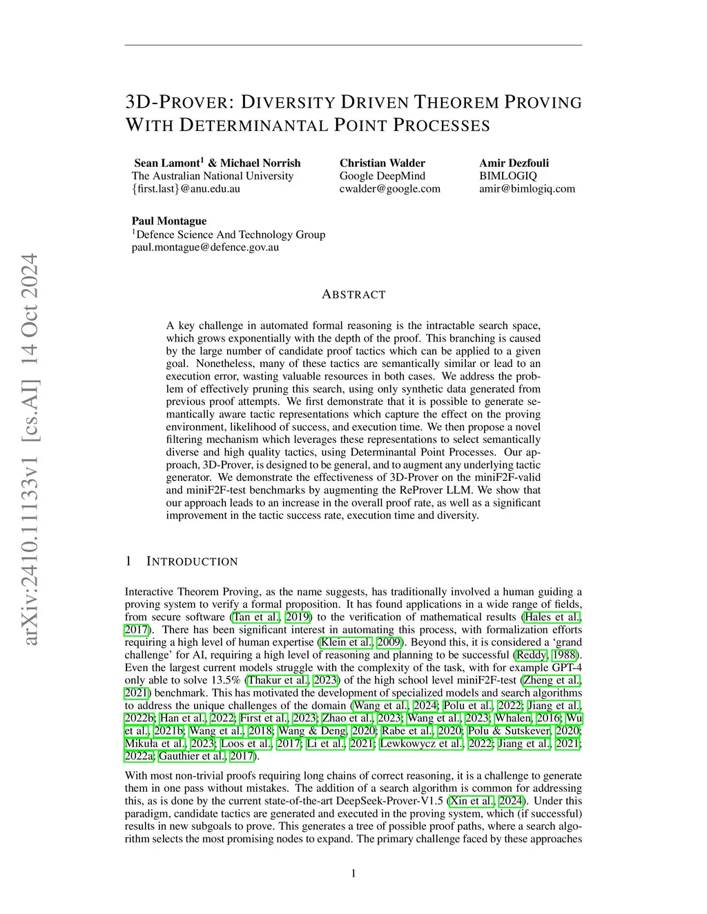 3D-Prover: Diversity Driven Theorem Proving With Determinantal Point Processes