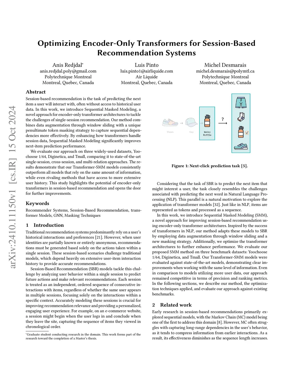 Session-based recommendation is the task of predicting the next item a user will interact with, often without access to historical user data. In this work, we introduce Sequential Masked Modeling, a novel approach for encoder-only transformer architectures to tackle the challenges of single-session recommendation. Our method combines data augmentation through window sliding with a unique penultimate token masking strategy to capture sequential dependencies more effectively. By enhancing how transformers handle session data, Sequential Masked Modeling significantly improves next-item prediction performance. We evaluate our approach on three widely-used datasets, Yoochoose 1/64, Diginetica, and Tmall, comparing it to state-of-the-art single-session, cross-session, and multi-relation approaches. The results demonstrate that our Transformer-SMM models consistently outperform all models that rely on the same amount of information, while even rivaling methods that have access to more extensive user history. This study highlights the potential of encoder-only transformers in session-based recommendation and opens the door for further improvements.