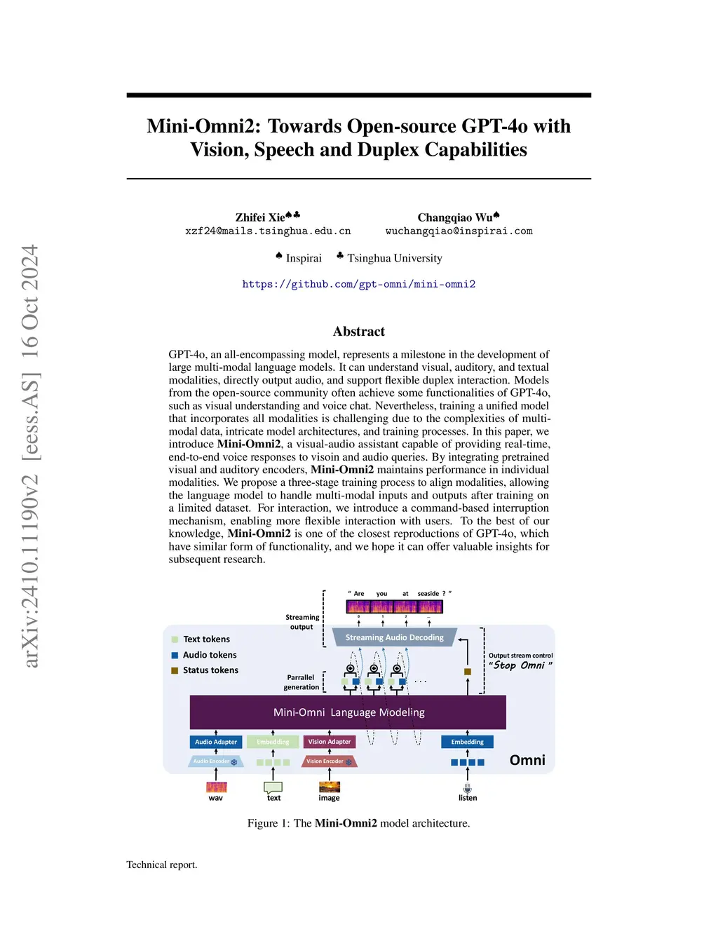 Mini-Omni2: Towards Open-source GPT-4o with Vision, Speech and Duplex