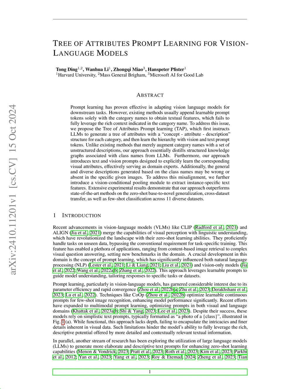 Tree of Attributes Prompt Learning for Vision-Language Models