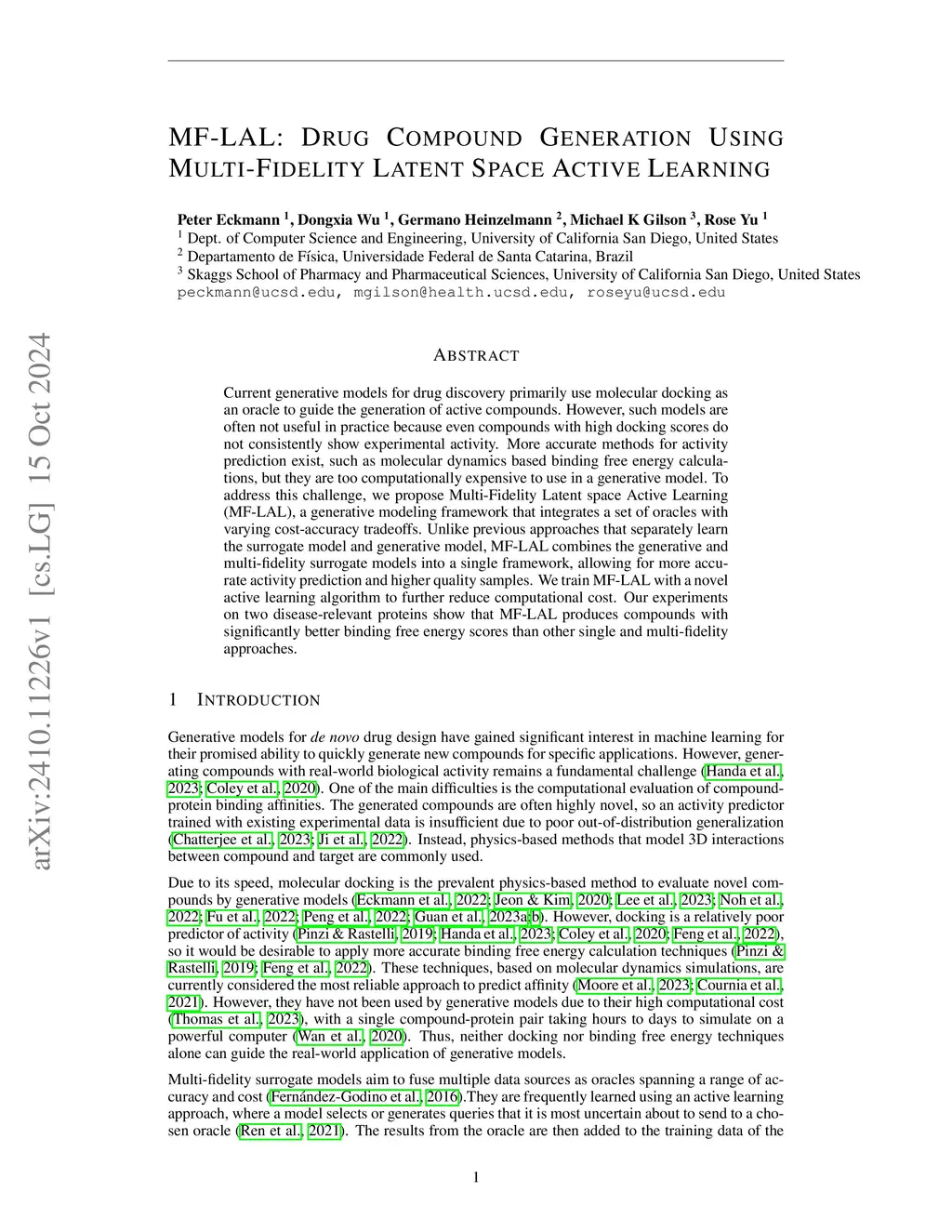 MF-LAL: Drug Compound Generation Using Multi-Fidelity Latent Space Active Learning