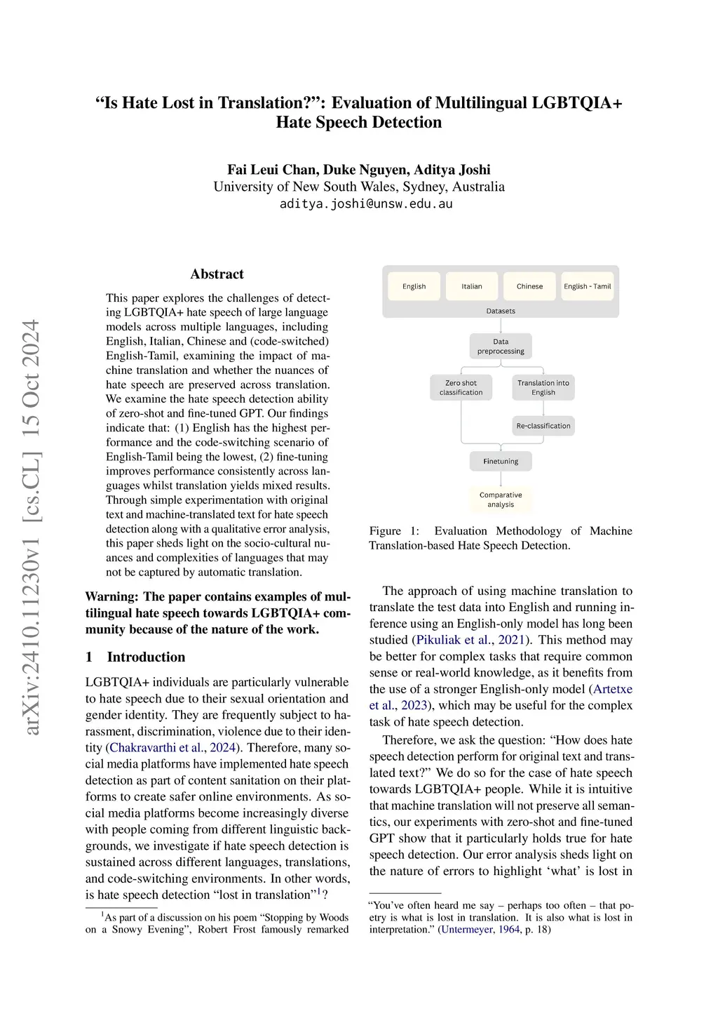 This paper explores the challenges of detecting LGBTQIA+ hate speech of large language models across multiple languages, including English, Italian, Chinese and (code-switched) English-Tamil, examining the impact of machine translation and whether the nuances of hate speech are preserved across translation. We examine the hate speech detection ability of zero-shot and fine-tuned GPT. Our findings indicate that: (1) English has the highest performance and the code-switching scenario of English-Tamil being the lowest, (2) fine-tuning improves performance consistently across languages whilst translation yields mixed results. Through simple experimentation with original text and machine-translated text for hate speech detection along with a qualitative error analysis, this paper sheds light on the socio-cultural nuances and complexities of languages that may not be captured by automatic translation.