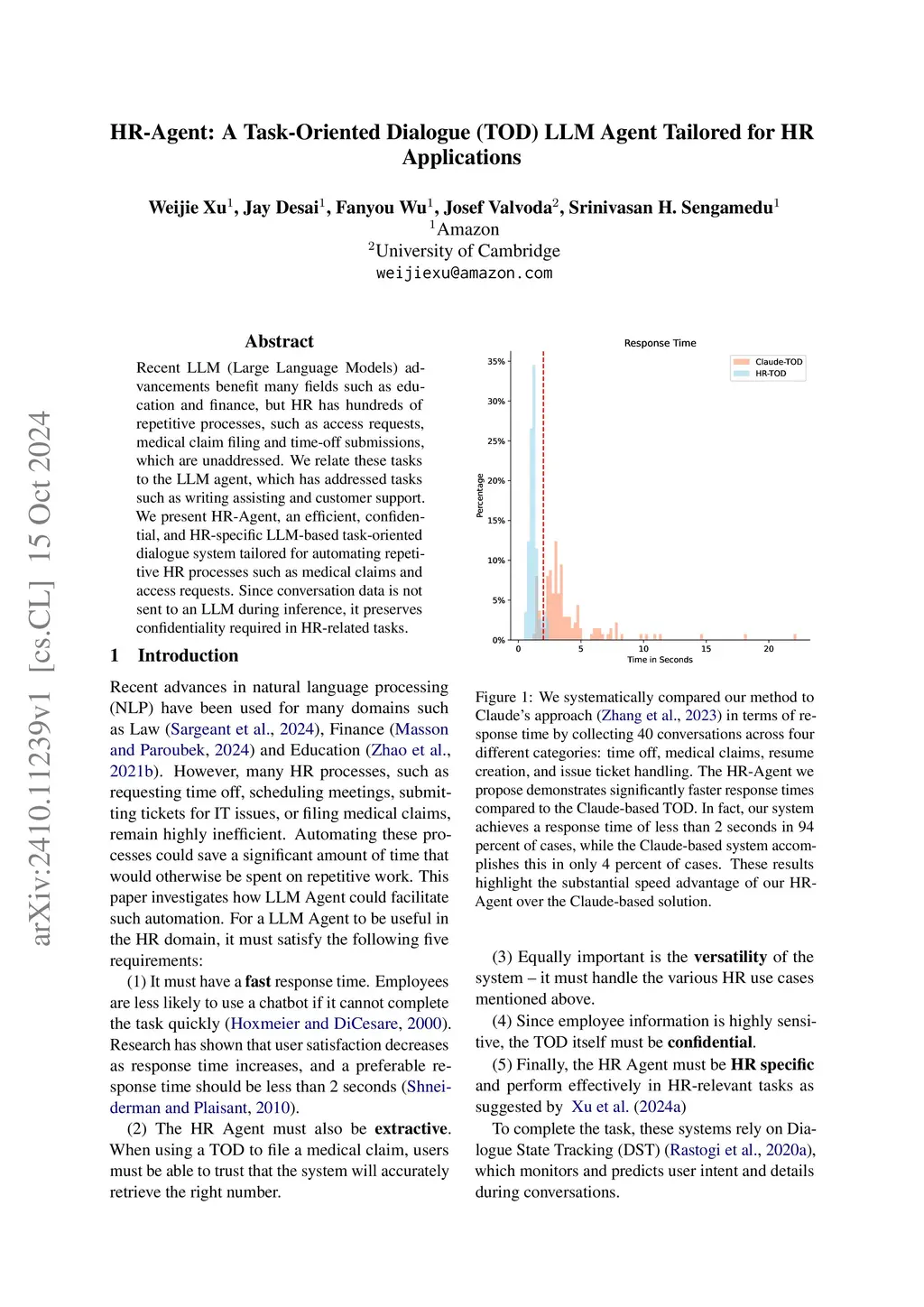 HR-Agent: A Task-Oriented Dialogue (TOD) LLM Agent Tailored for HR