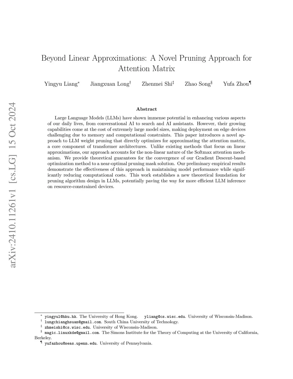 Beyond Linear Approximations: A Novel Pruning Approach for Attention Matrix