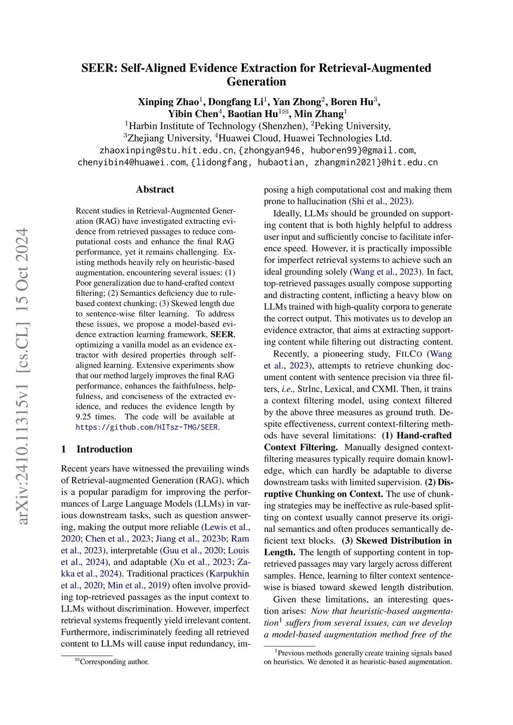 SEER: Self-Aligned Evidence Extraction for Retrieval-Augmented