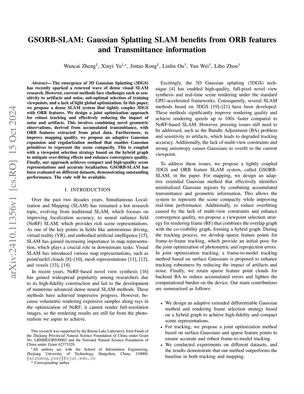 GSORB-SLAM: Gaussian Splatting SLAM benefits from ORB features and Transmittance information