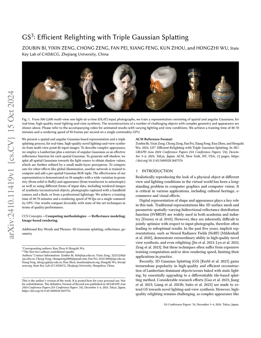GS^3: Efficient Relighting with Triple Gaussian Splatting