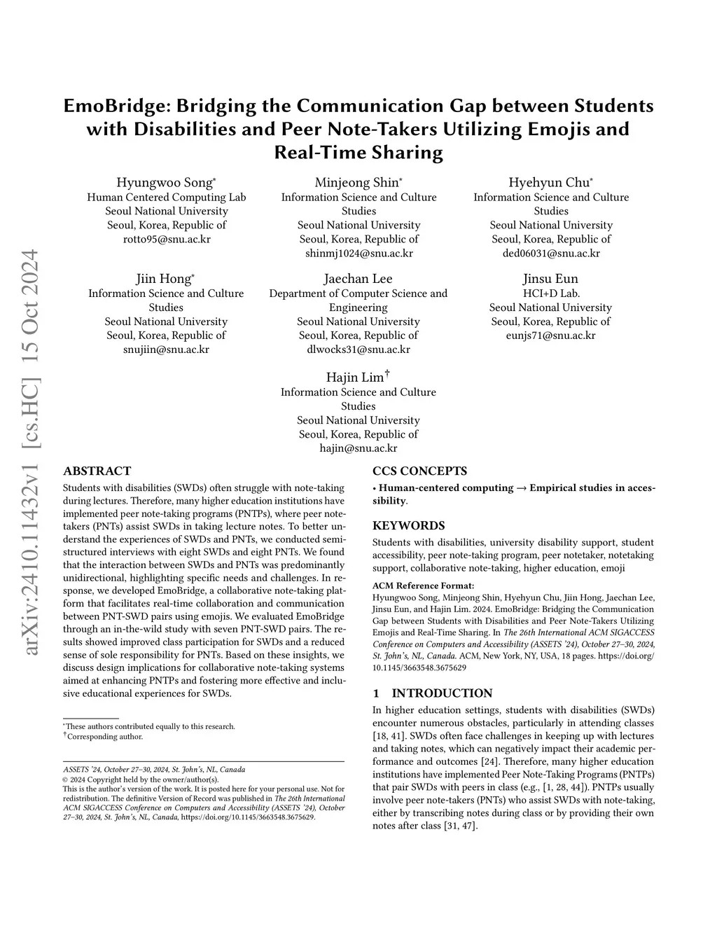Disabilities and Peer Note-Takers Utilizing Emojis and Real-Time Sharing
