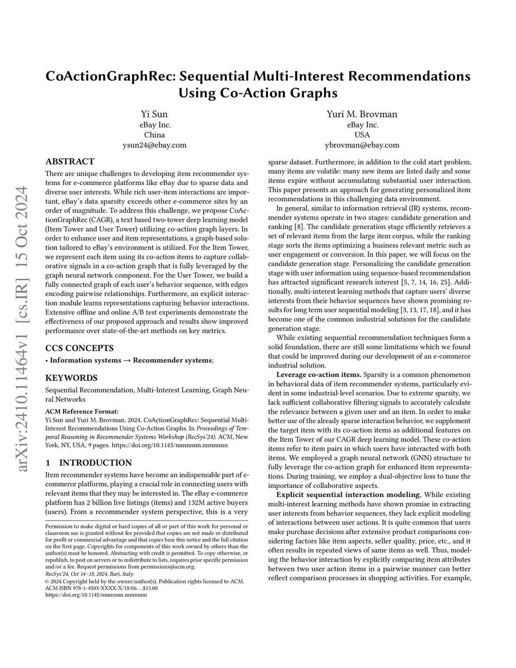 CoActionGraphRec: Sequential Multi-Interest Recommendations Using