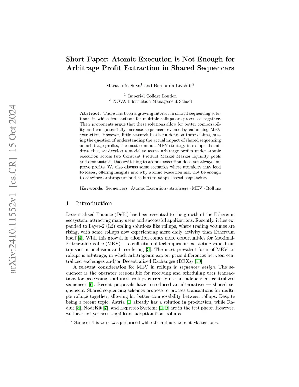 Short Paper: Atomic Execution is Not Enough for Arbitrage Profit Extraction in Shared Sequencers