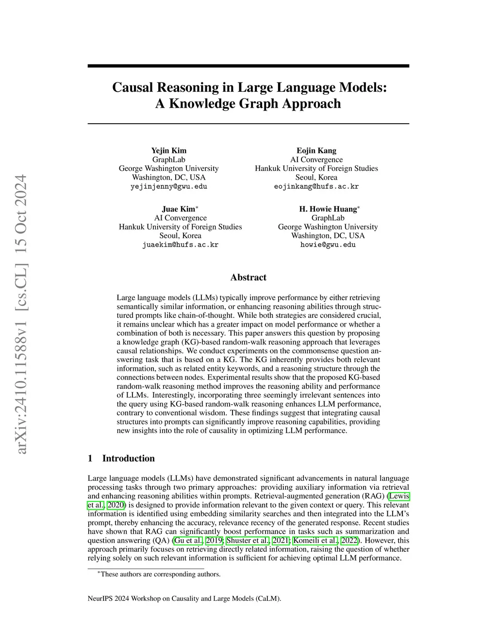 Large language models (LLMs) typically improve performance by either retrieving semantically similar information, or enhancing reasoning abilities through structured prompts like chain-of-thought. While both strategies are considered crucial, it remains unclear which has a greater impact on model performance or whether a combination of both is necessary. This paper answers this question by proposing a knowledge graph (KG)-based random-walk reasoning approach that leverages causal relationships. We conduct experiments on the commonsense question answering task that is based on a KG. The KG inherently provides both relevant information, such as related entity keywords, and a reasoning structure through the connections between nodes. Experimental results show that the proposed KG-based random-walk reasoning method improves the reasoning ability and performance of LLMs. Interestingly, incorporating three seemingly irrelevant sentences into the query using KG-based random-walk reasoning enhances LLM performance, contrary to conventional wisdom. These findings suggest that integrating causal structures into prompts can significantly improve reasoning capabilities, providing new insights into the role of causality in optimizing LLM performance.