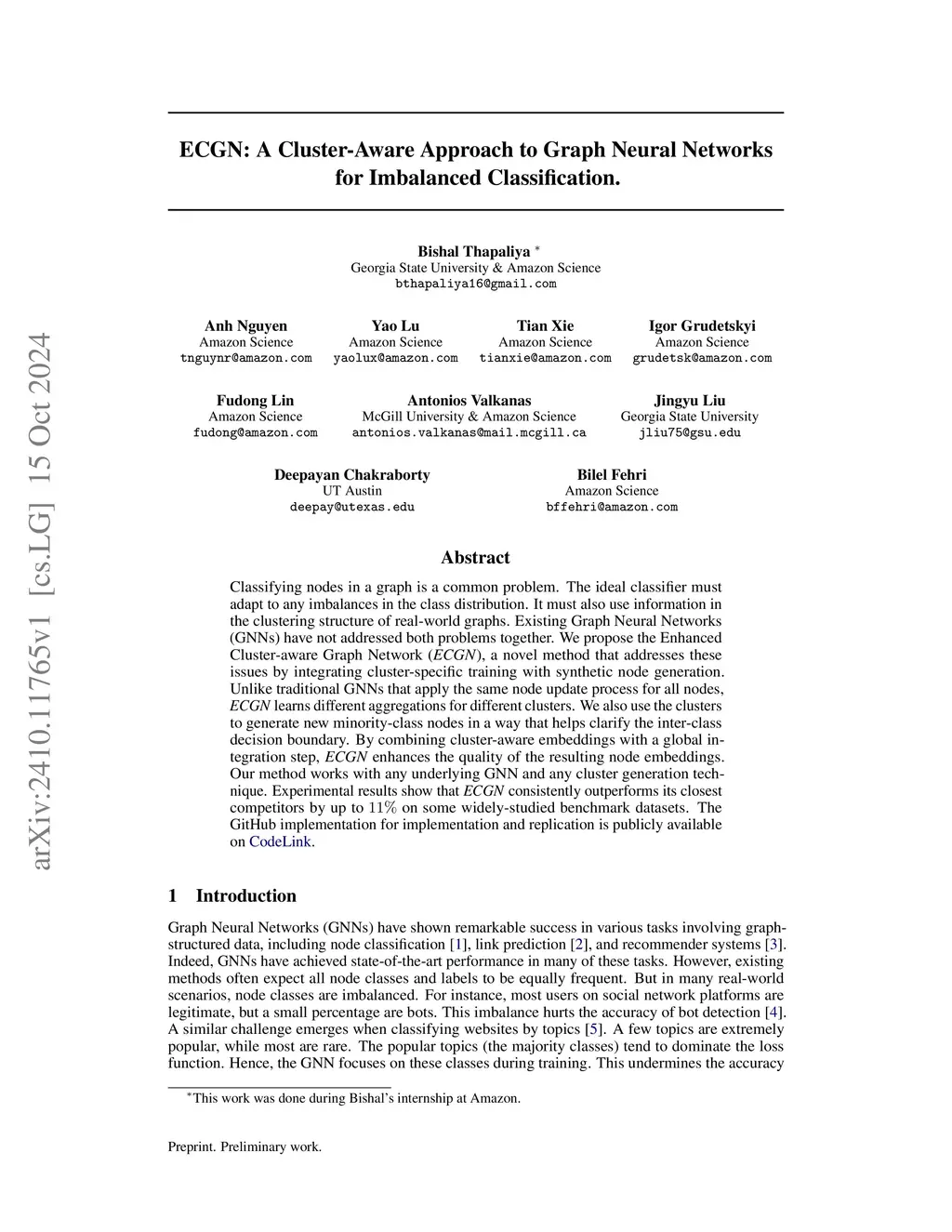 ECGN: A Cluster-Aware Approach to Graph Neural Networks for Imbalanced