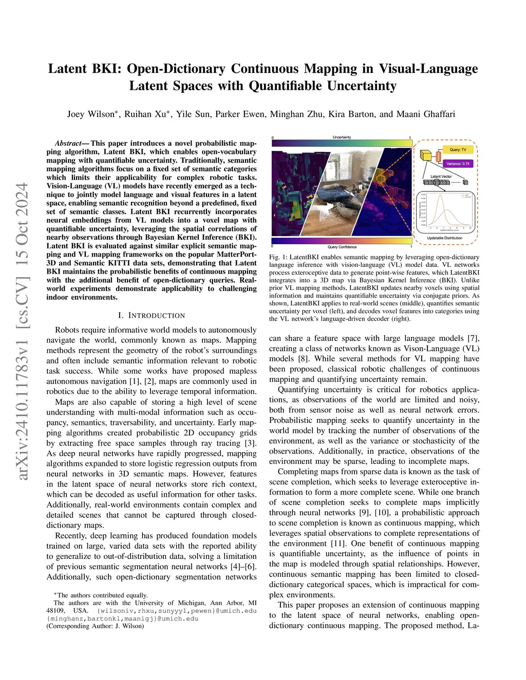 LatentBKI: Open-Dictionary Continuous Mapping in Visual-Language Latent Spaces with Quantifiable Uncertainty