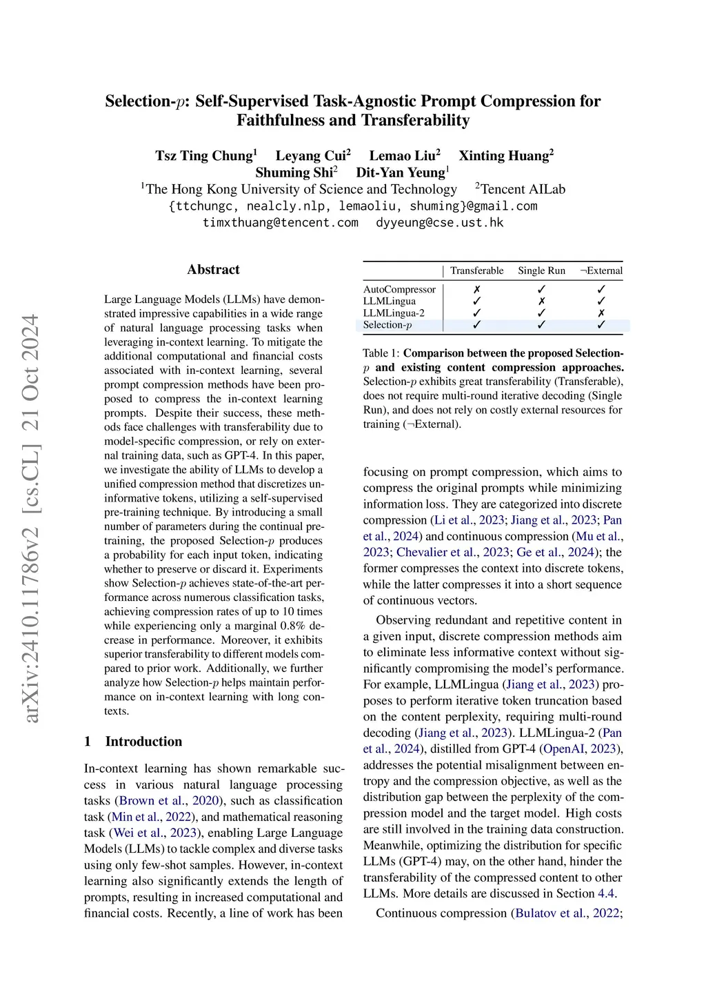 Selection-p: Self-Supervised Task-Agnostic Prompt Compression for