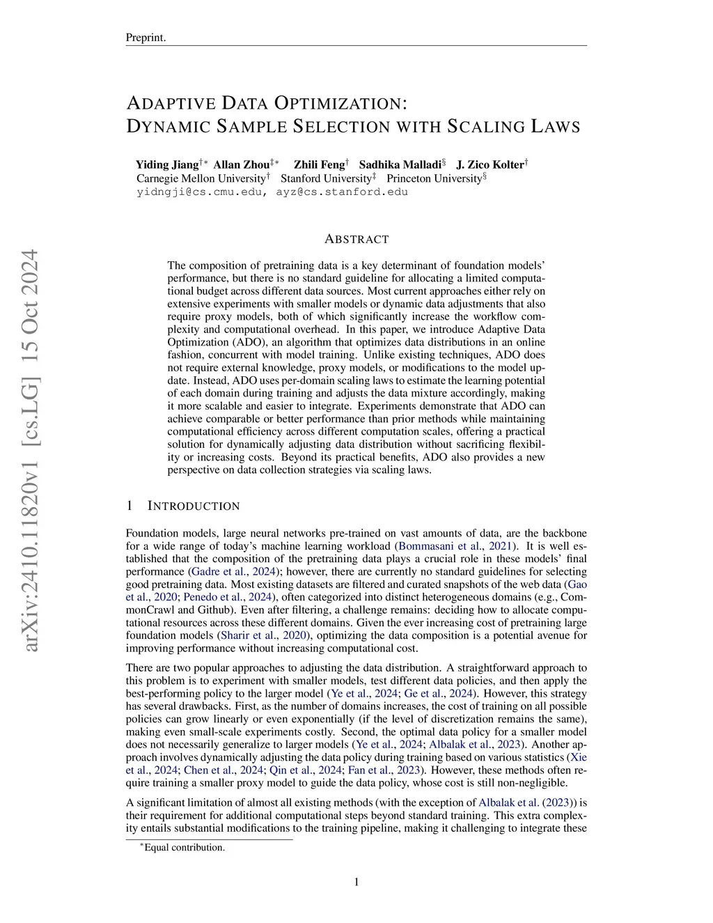 Adaptive Data Optimization: Dynamic Sample Selection with Scaling Laws