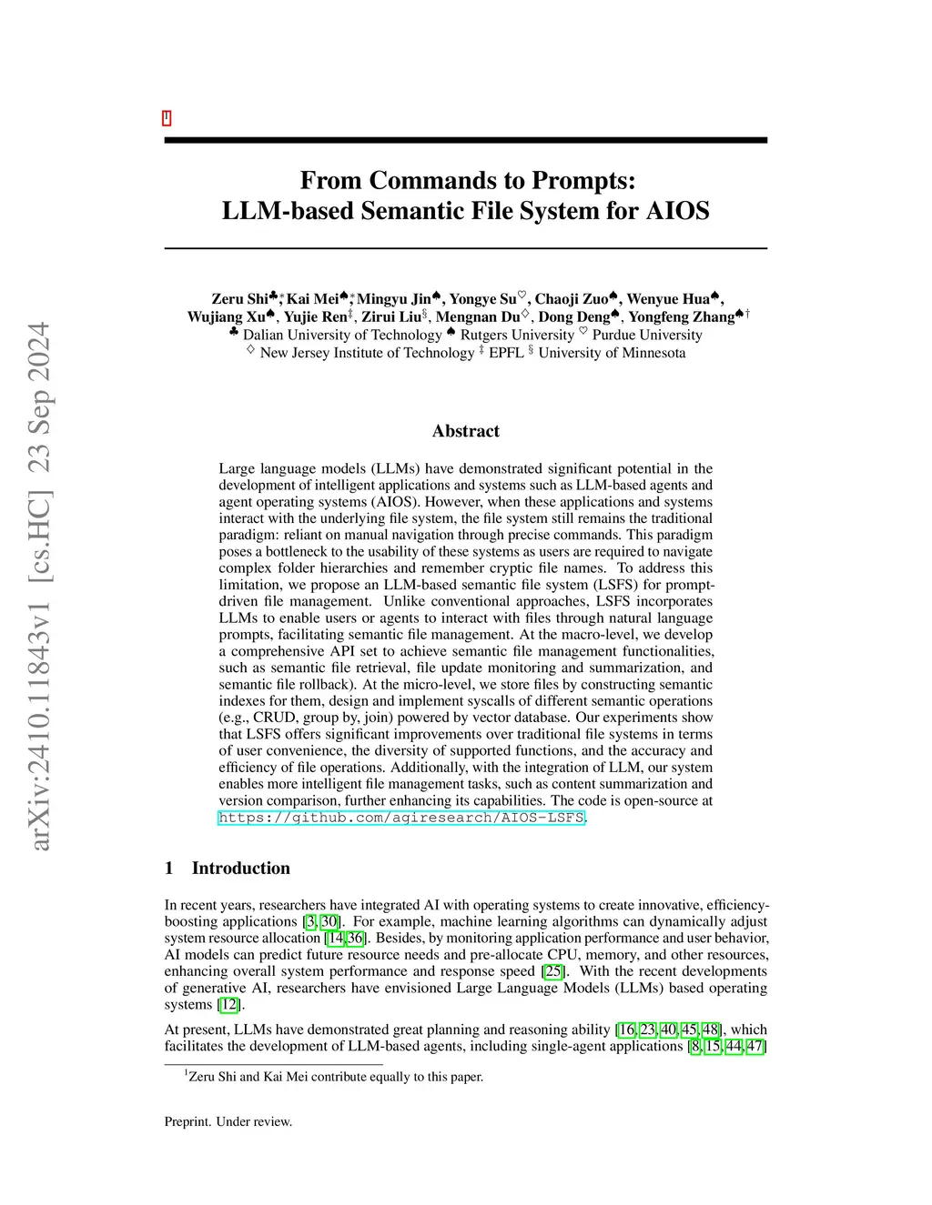 From Commands to Prompts: LLM-based Semantic File System for AIOS