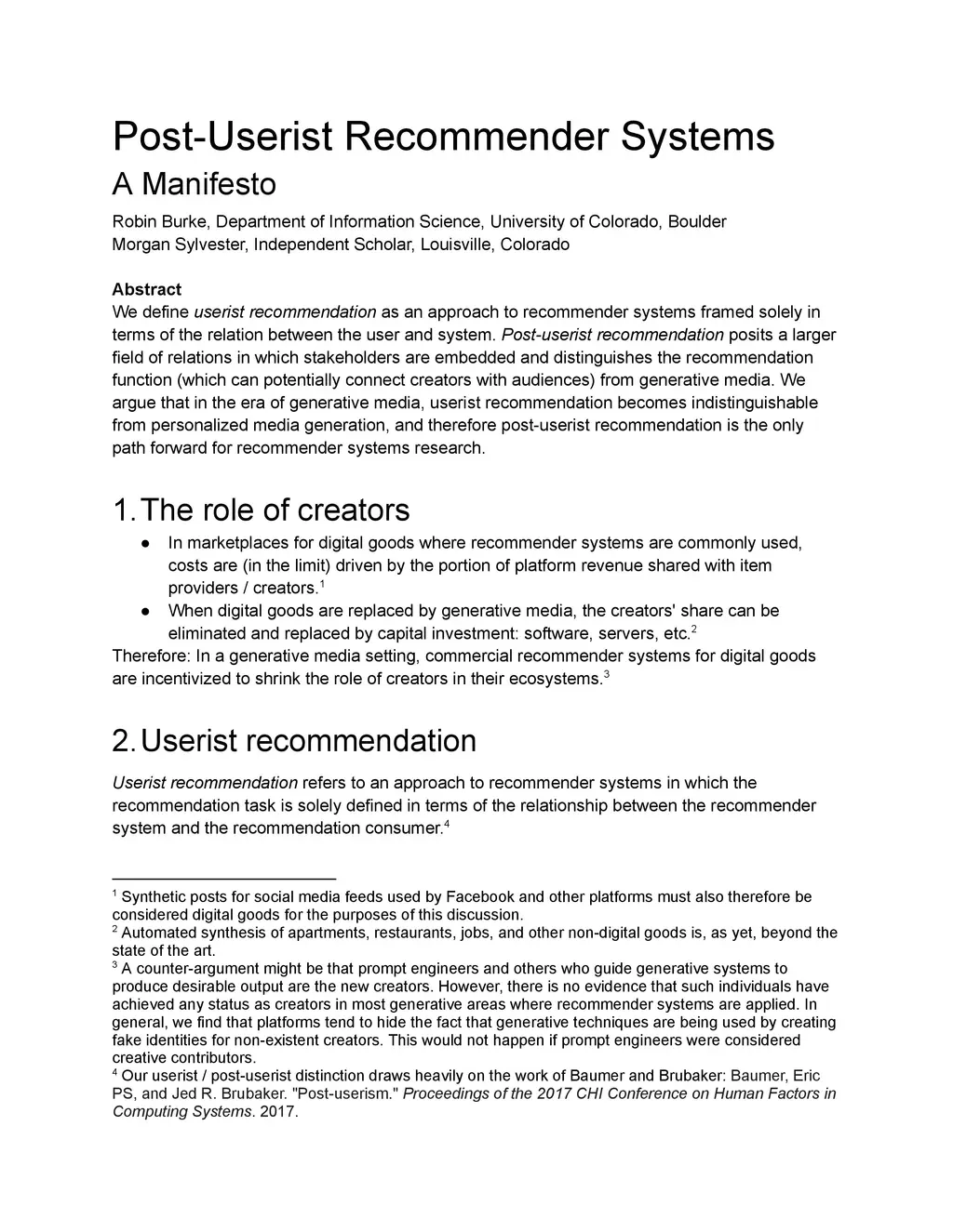 Post-Userist Recommender Systems : A Manifesto