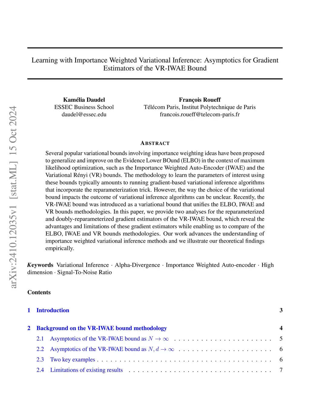 Learning with Importance Weighted Variational Inference: Asymptotics for