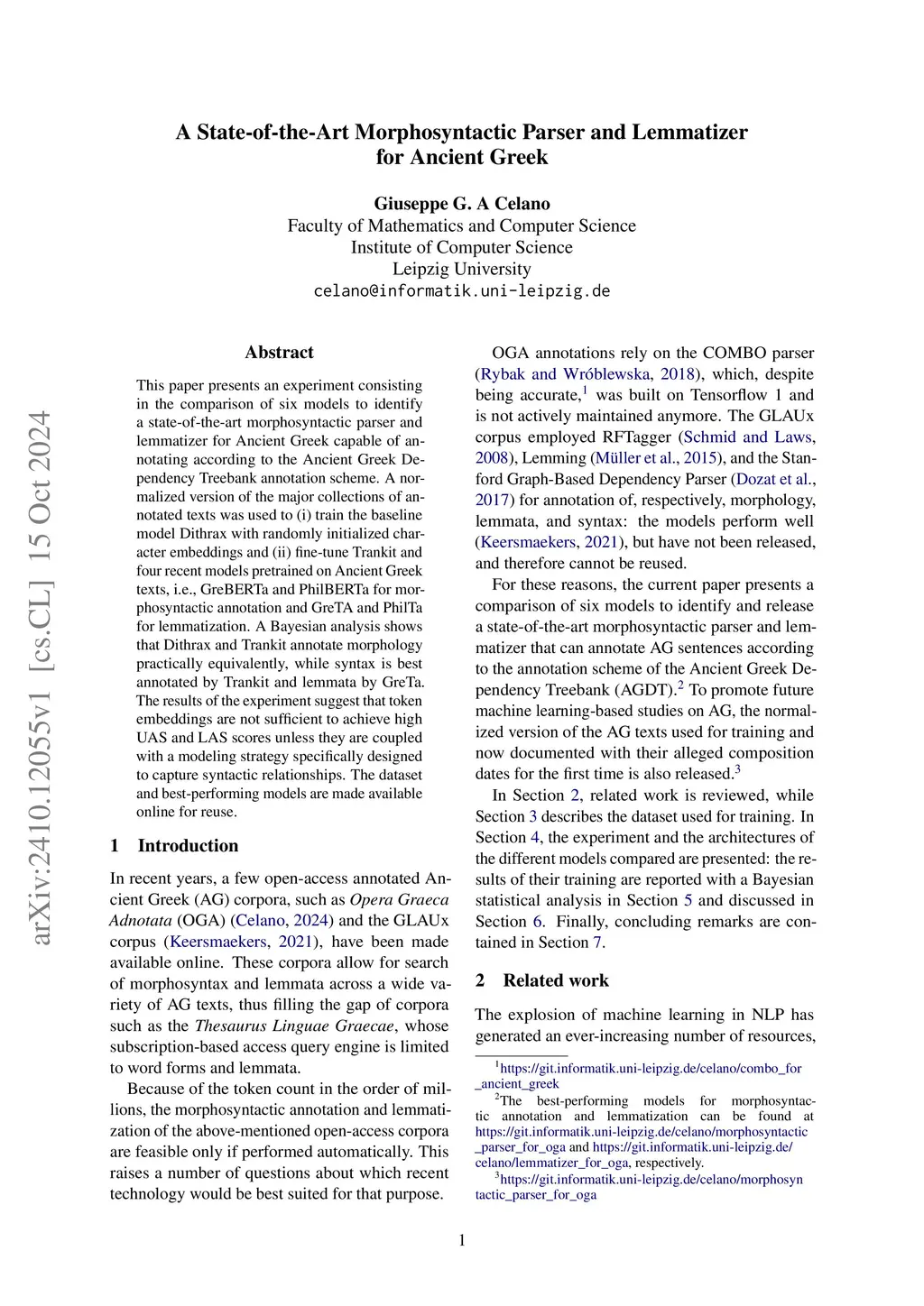A State-of-the-Art Morphosyntactic Parser and Lemmatizer for Ancient
