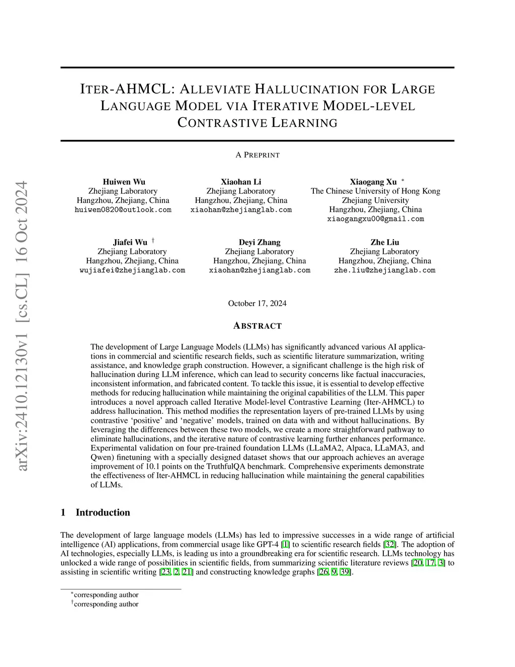 Iter-AHMCL: Alleviate Hallucination for Large Language Model via