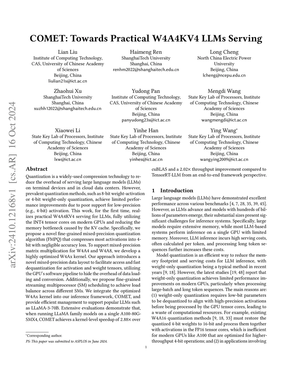 COMET: Towards Partical W4A4KV4 LLMs Serving