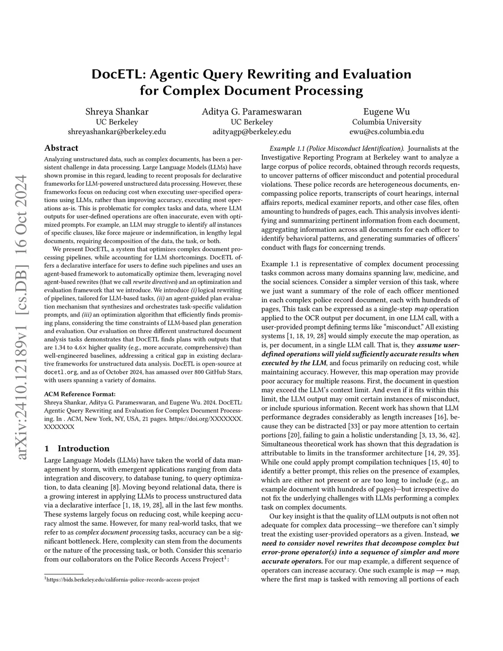 DocETL: Agentic Query Rewriting and Evaluation for Complex Document Processing