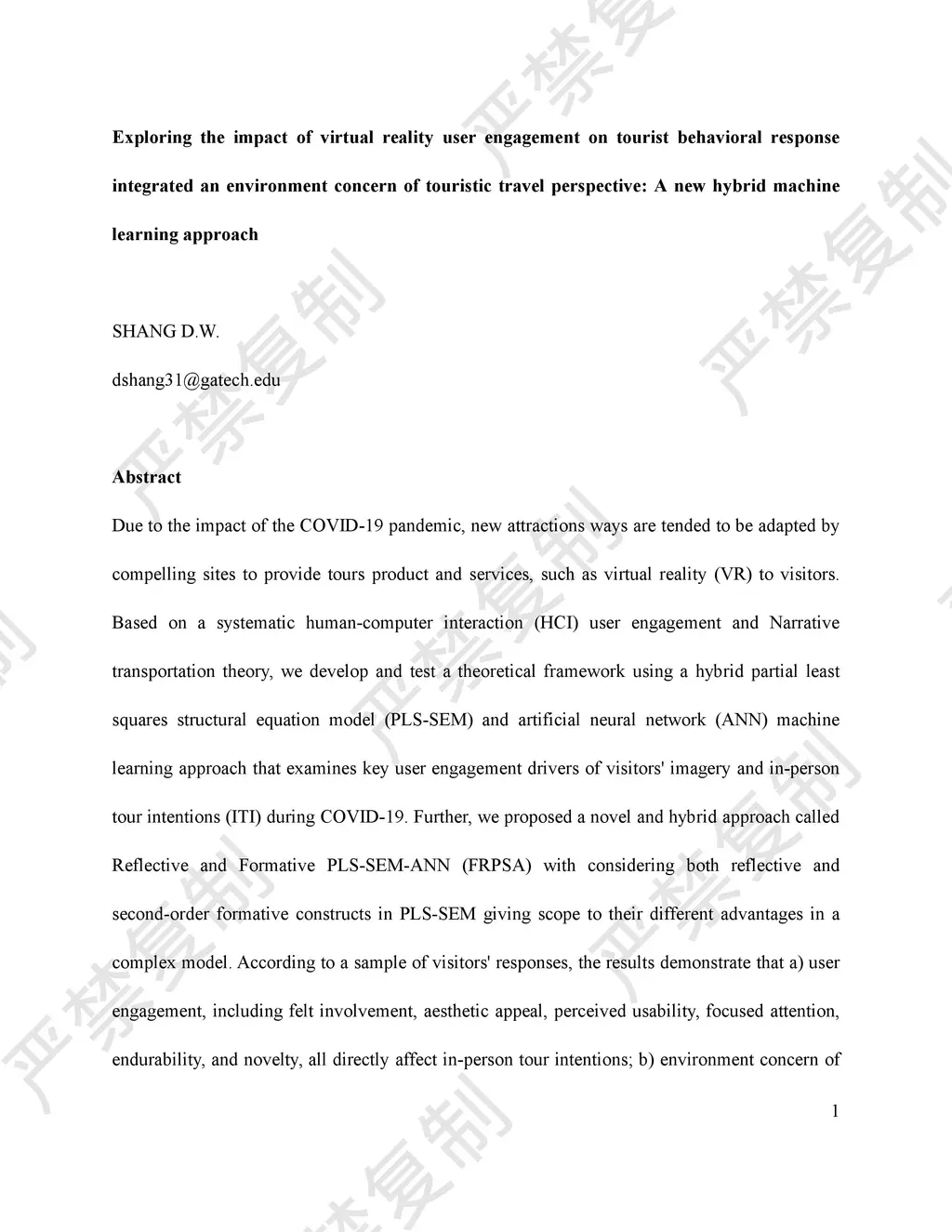 Due to the impact of the COVID-19 pandemic, new attractions ways are tended to be adapted by compelling sites to provide tours product and services, such as virtual reality (VR) to visitors. Based on a systematic human-computer interaction (HCI) user engagement and Narrative transportation theory, we develop and test a theoretical framework using a hybrid partial least squares structural equation model (PLS-SEM) and artificial neural network (ANN) machine learning approach that examines key user engagement drivers of visitors' imagery and in-person tour intentions (ITI) during COVID-19. Further, we proposed a novel and hybrid approach called Reflective and Formative PLS-SEM-ANN (FRPSA) with considering both reflective and second-order formative constructs in PLS-SEM giving scope to their different advantages in a complex model. According to a sample of visitors' responses, the results demonstrate that a) user engagement, including felt involvement, aesthetic appeal, perceived usability, focused attention, endurability, and novelty, all directly affect in-person tour intentions; b) environment concern of touristic travel (EC) positively moderates the relationships between user engagement and ITI; c) EC negatively moderates the relationships between imagery and ITI; d) imagery exerts the mediating effect between user engagement and ITI; e) the felt involvement and aesthetic appeal show both the linear significance impact and nonlinear importance. Finally, contributions to theories and practical implications are discussed accordingly.