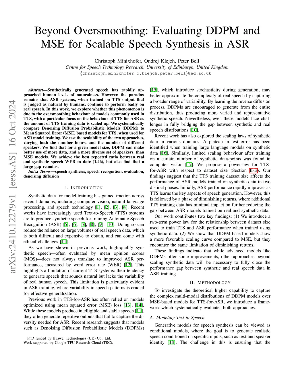 Synthetically generated speech has rapidly approached human levels of naturalness. However, the paradox remains that ASR systems, when trained on TTS output that is judged as natural by humans, continue to perform badly on real speech. In this work, we explore whether this phenomenon is due to the oversmoothing behaviour of models commonly used in TTS, with a particular focus on the behaviour of TTS-for-ASR as the amount of TTS training data is scaled up. We systematically compare Denoising Diffusion Probabilistic Models (DDPM) to Mean Squared Error (MSE) based models for TTS, when used for ASR model training. We test the scalability of the two approaches, varying both the number hours, and the number of different speakers. We find that for a given model size, DDPM can make better use of more data, and a more diverse set of speakers, than MSE models. We achieve the best reported ratio between real and synthetic speech WER to date (1.46), but also find that a large gap remains.