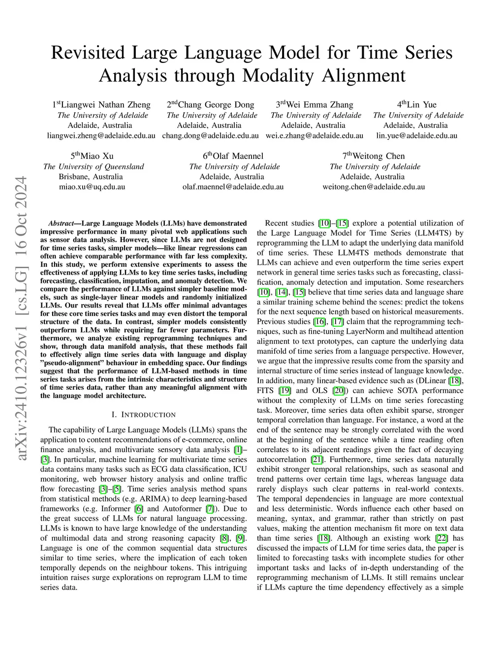 Large Language Models (LLMs) have demonstrated impressive performance in time series analysis and seems to understand the time temporal relationship well than traditional transformer-based approaches. However, since LLMs are not designed for time series tasks, simpler models like linear regressions can often achieve comparable performance with far less complexity. In this study, we perform extensive experiments to assess the effectiveness of applying LLMs to key time series tasks, including forecasting, classification, imputation, and anomaly detection. We compare the performance of LLMs against simpler baseline models, such as single layer linear models and randomly initialized LLMs. Our results reveal that LLMs offer minimal advantages for these core time series tasks and may even distort the temporal structure of the data. In contrast, simpler models consistently outperform LLMs while requiring far fewer parameters. Furthermore, we analyze existing reprogramming techniques and show, through data manifold analysis, that these methods fail to effectively align time series data with language and display "pseudo-alignment" behavior in embedding space. Our findings suggest that the performance of LLM based methods in time series tasks arises from the intrinsic characteristics and structure of time series data, rather than any meaningful alignment with the language model architecture.