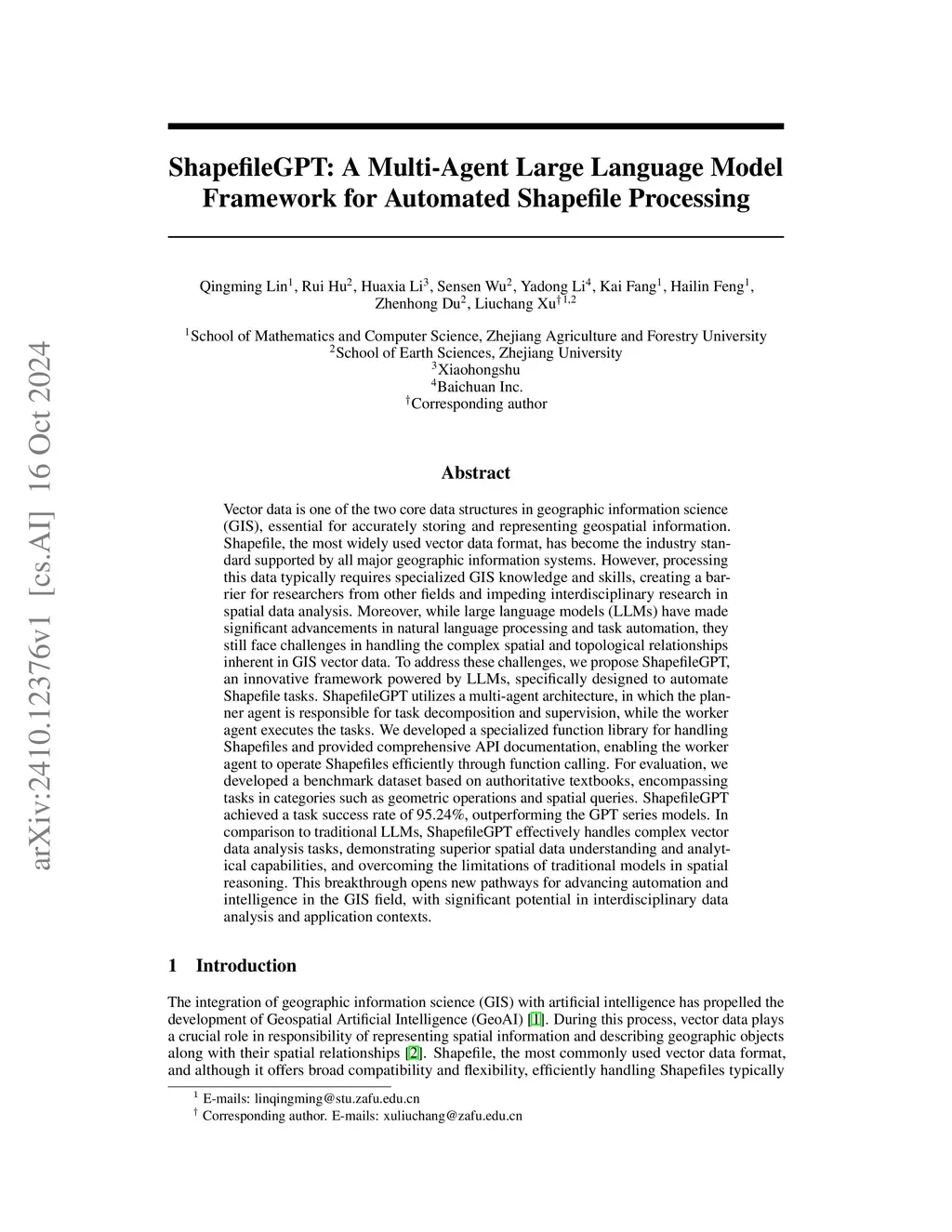 ShapefileGPT: A Multi-Agent Large Language Model Framework for Automated Shapefile Processing