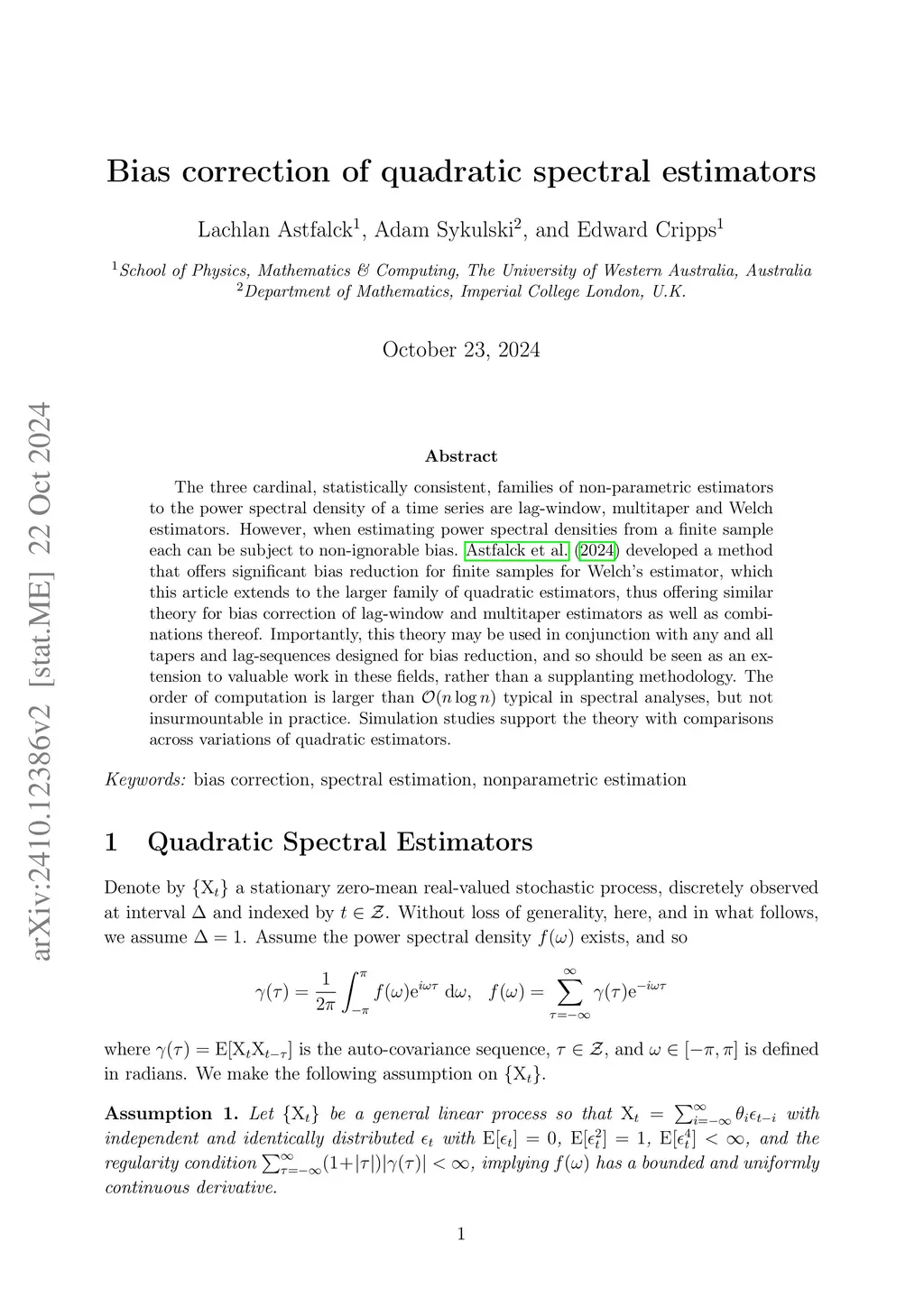 The three cardinal, statistically consistent, families of non-parametric estimators to the power spectral density of a time series are lag-window, multitaper and Welch estimators. However, when estimating power spectral densities from a finite sample each can be subject to non-ignorable bias. Astfalck et al. (2024) developed a method that offers significant bias reduction for finite samples for Welch's estimator, which this article extends to the larger family of quadratic estimators, thus offering similar theory for bias correction of lag-window and multitaper estimators as well as combinations thereof. Importantly, this theory may be used in conjunction with any and all tapers and lag-sequences designed for bias reduction, and so should be seen as an extension to valuable work in these fields, rather than a supplanting methodology. The order of computation is larger than O(n log n) typical in spectral analyses, but not insurmountable in practice. Simulation studies support the theory with comparisons across variations of quadratic estimators.