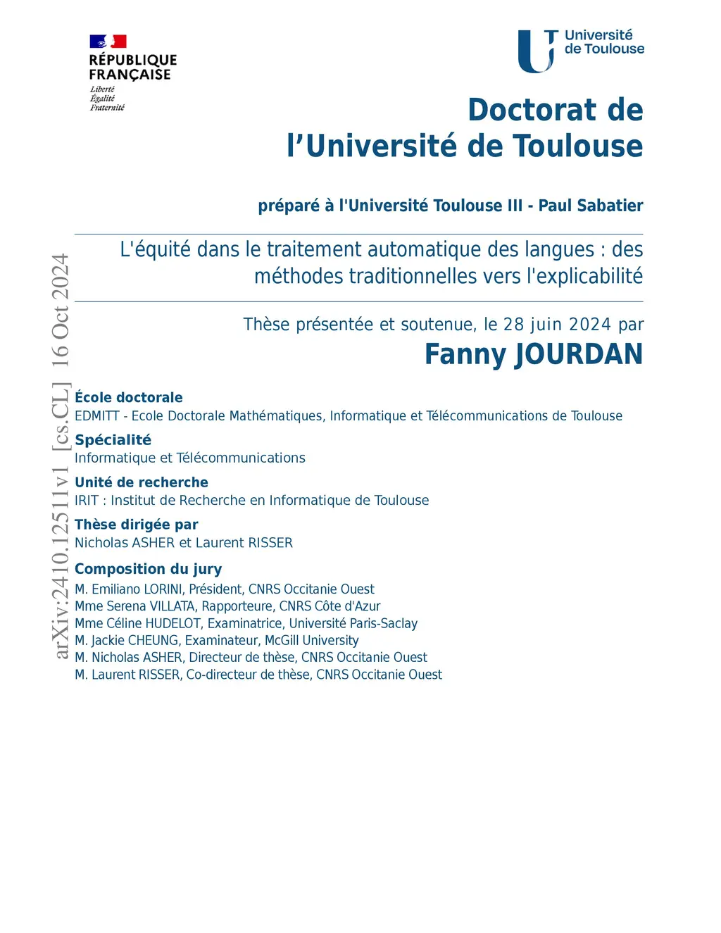 The burgeoning field of Natural Language Processing (NLP) stands at a critical juncture where the integration of fairness within its frameworks has become an imperative. This PhD thesis addresses the need for equity and transparency in NLP systems, recognizing that fairness in NLP is not merely a technical challenge but a moral and ethical necessity, requiring a rigorous examination of how these technologies interact with and impact diverse human populations. Through this lens, this thesis undertakes a thorough investigation into the development of equitable NLP methodologies and the evaluation of biases that prevail in current systems. First, it introduces an innovative algorithm to mitigate biases in multi-class classifiers, tailored for high-risk NLP applications, surpassing traditional methods in both bias mitigation and prediction accuracy. Then, an analysis of the Bios dataset reveals the impact of dataset size on discriminatory biases and the limitations of standard fairness metrics. This awareness has led to explorations in the field of explainable AI, aiming for a more complete understanding of biases where traditional metrics are limited. Consequently, the thesis presents COCKATIEL, a model-agnostic explainability method that identifies and ranks concepts in Transformer models, outperforming previous approaches in sentiment analysis tasks. Finally, the thesis contributes to bridging the gap between fairness and explainability by introducing TaCo, a novel method to neutralize bias in Transformer model embeddings. In conclusion, this thesis constitutes a significant interdisciplinary endeavor that intertwines explicability and fairness to challenge and reshape current NLP paradigms. The methodologies and critiques presented contribute to the ongoing discourse on fairness in machine learning, offering actionable solutions for more equitable and responsible AI systems.