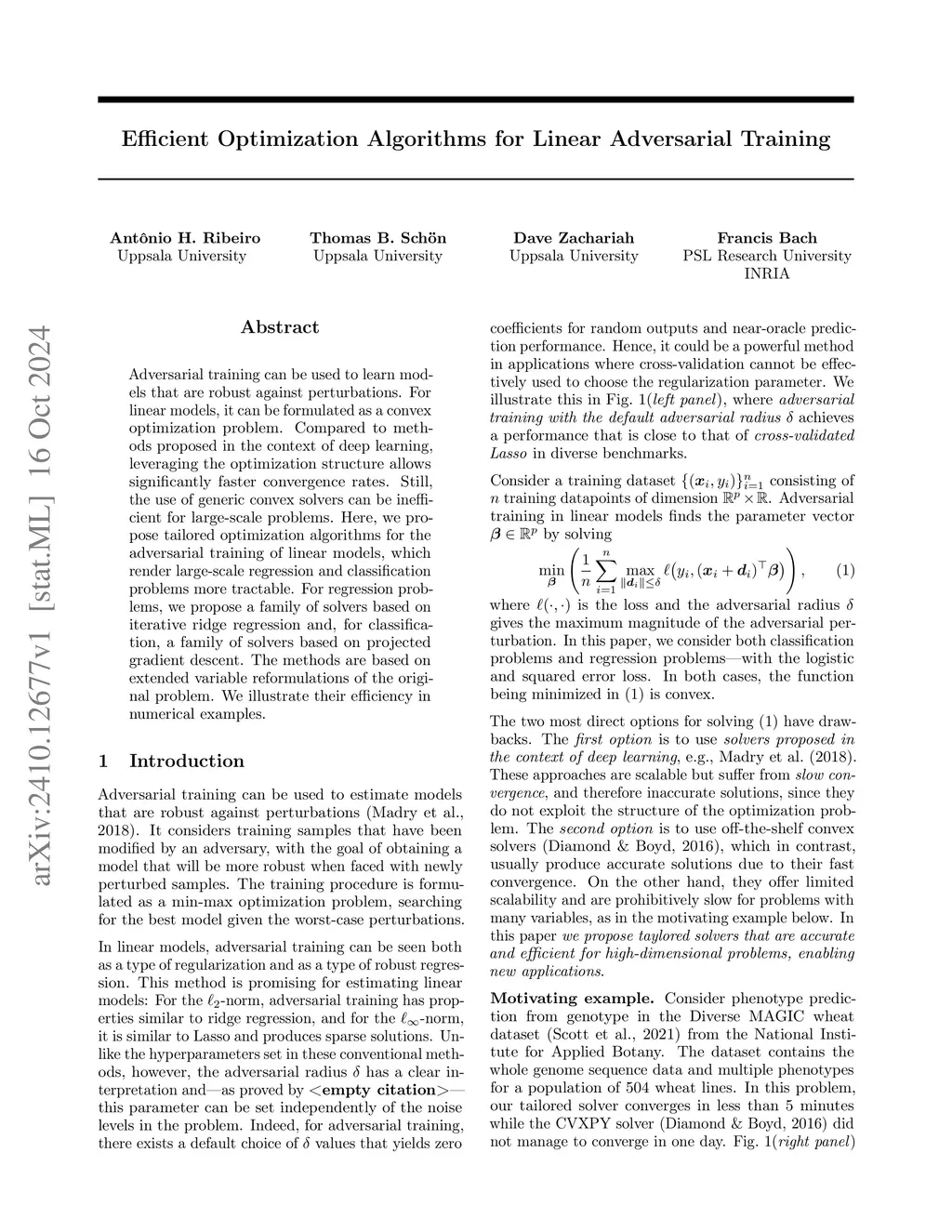 Efficient Optimization Algorithms for Linear Adversarial Training