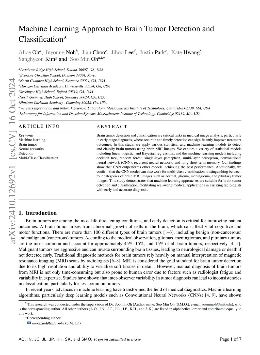 Machine learning approach to brain tumor detection and classification